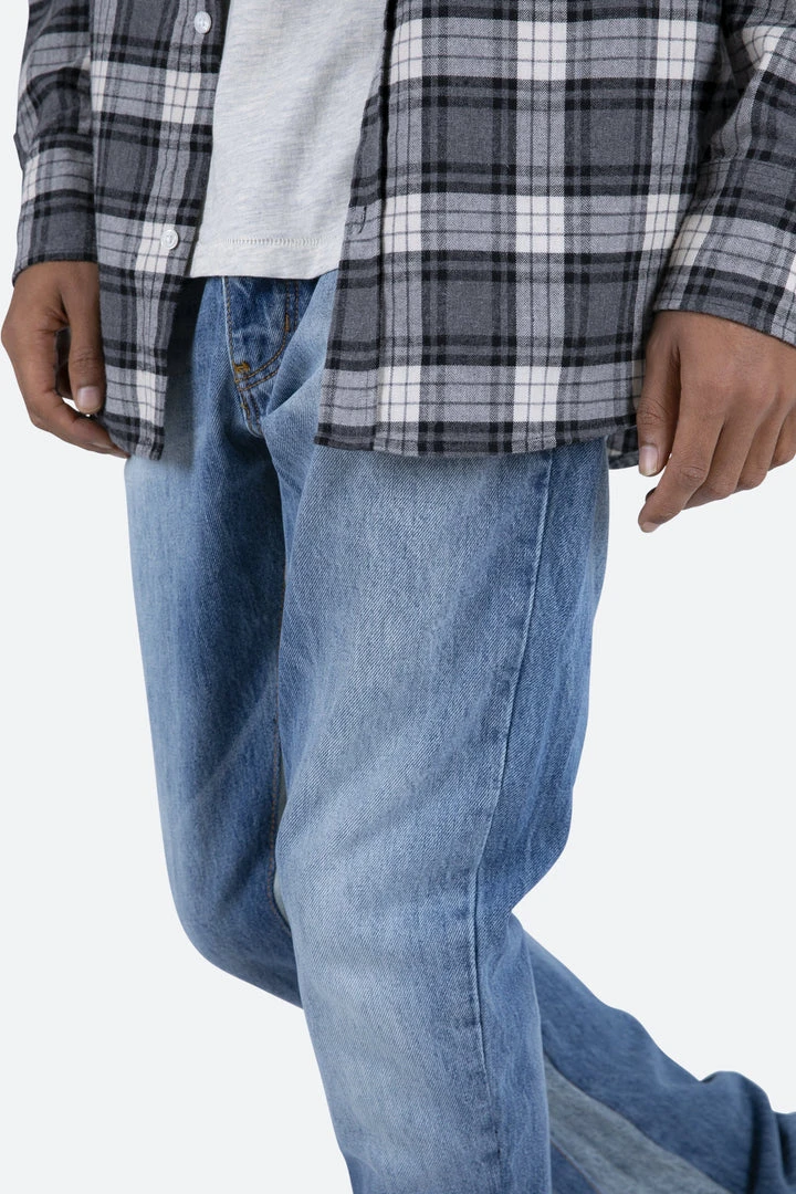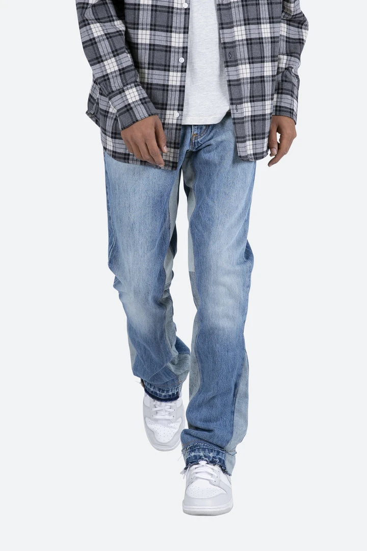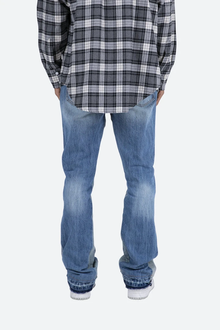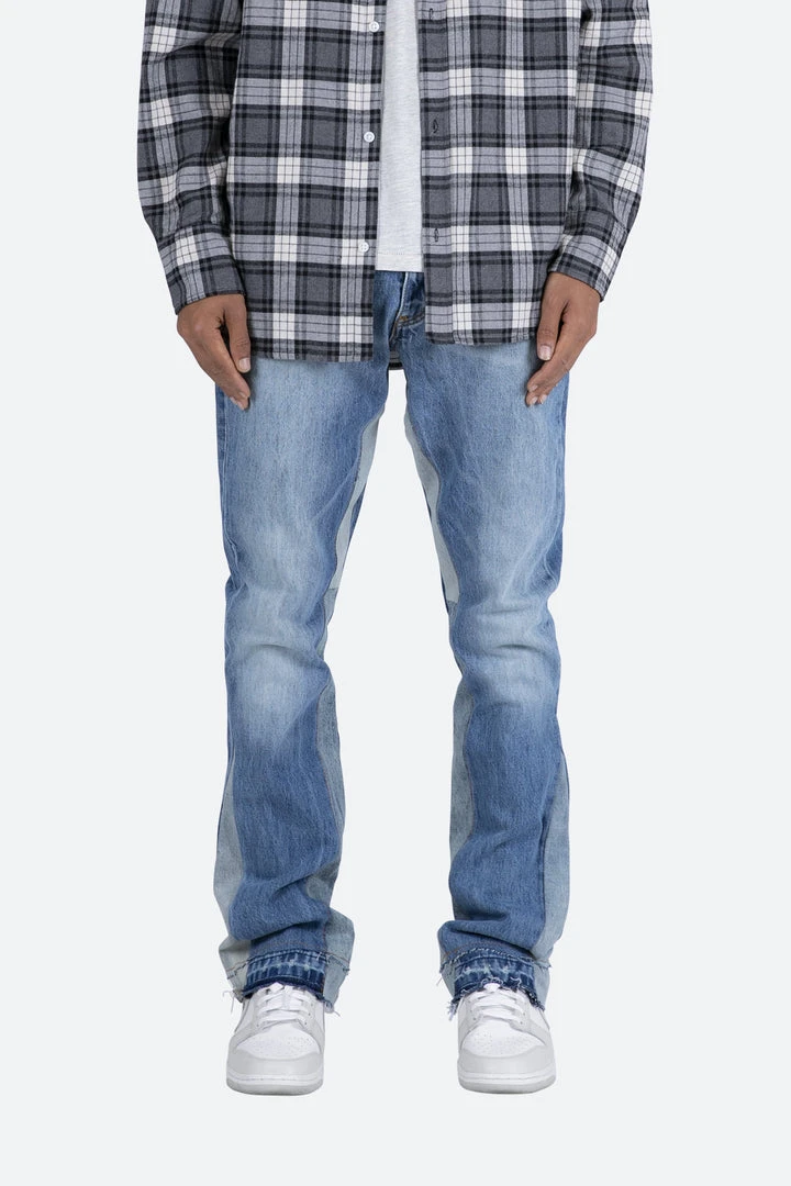 - Crafted from premium denim, the Mnml B119 Flare Denim features a classic blue wash, a flared leg design, and a mid-rise waist for a timeless look that suits any occasion.