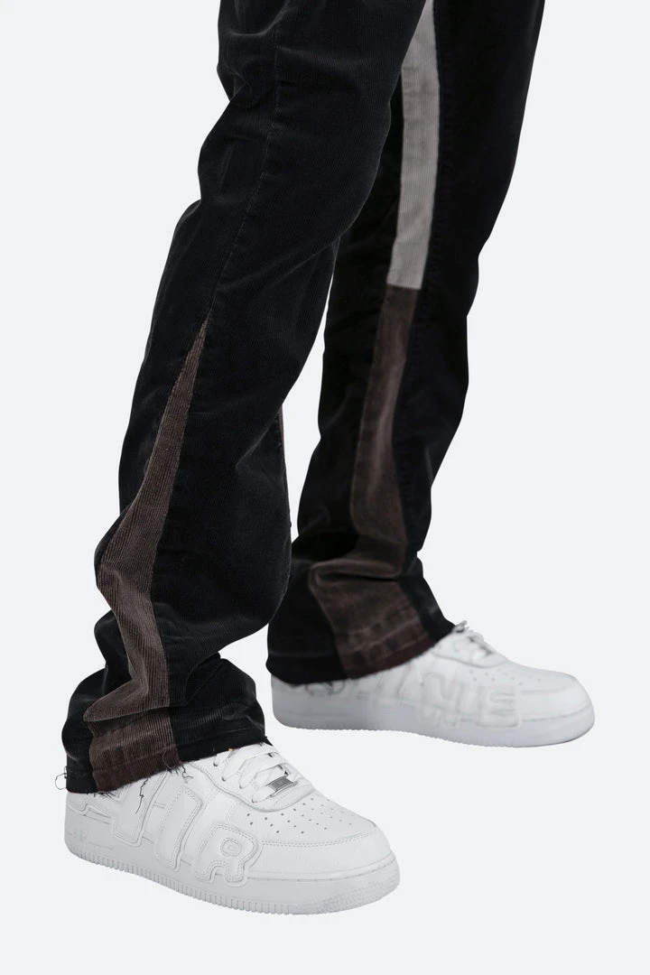 - Elevate your wardrobe with the Mnml B356 Corduroy Flare Pants in Black. These high-waisted, retro-inspired pants feature a flared design for a chic and timeless look.