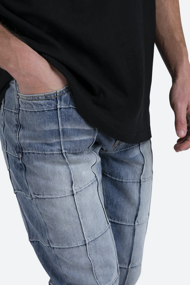 - Crafted with premium denim, the Mnml B420 Paneled Flare Denim features a unique paneled design and a flared cut, making it a standout piece in your wardrobe.