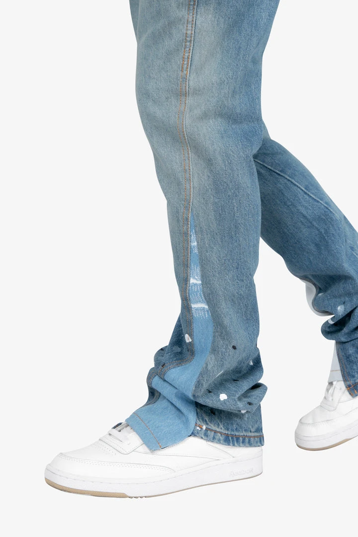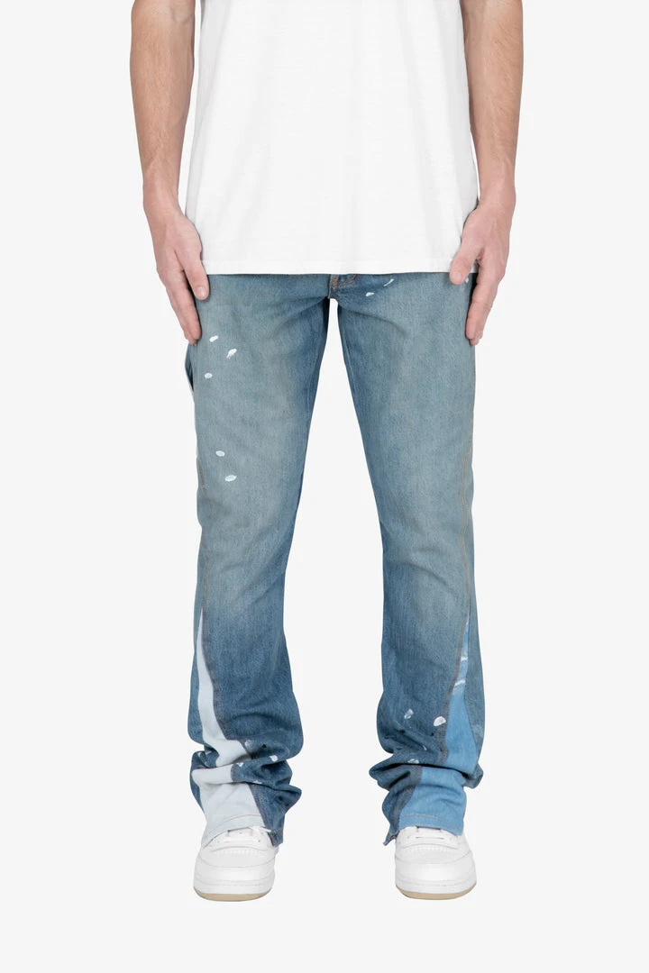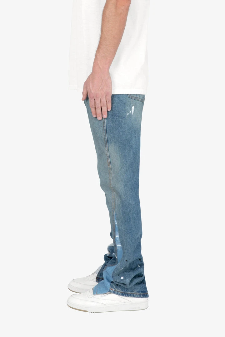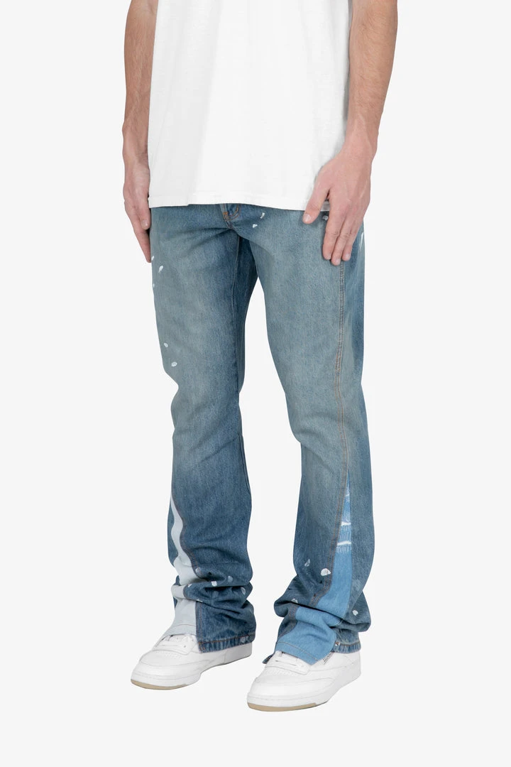 - Elevate your denim game with the Mnml B425 Patch Flare Denim in Blue. Designed for both men and women, these jeans offer a trendy B flare silhouette that combines comfort and style.