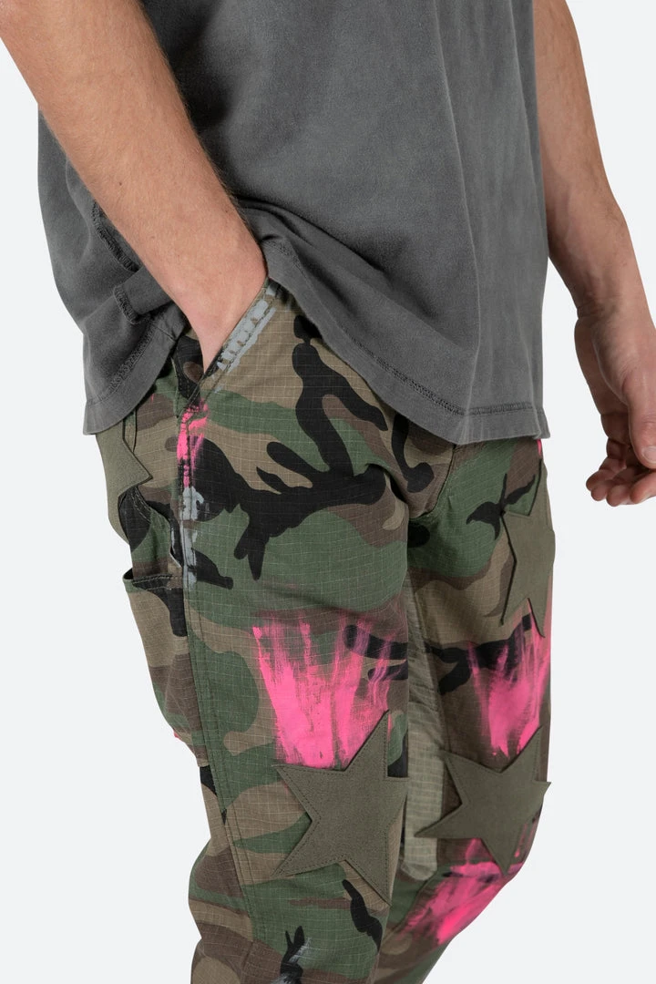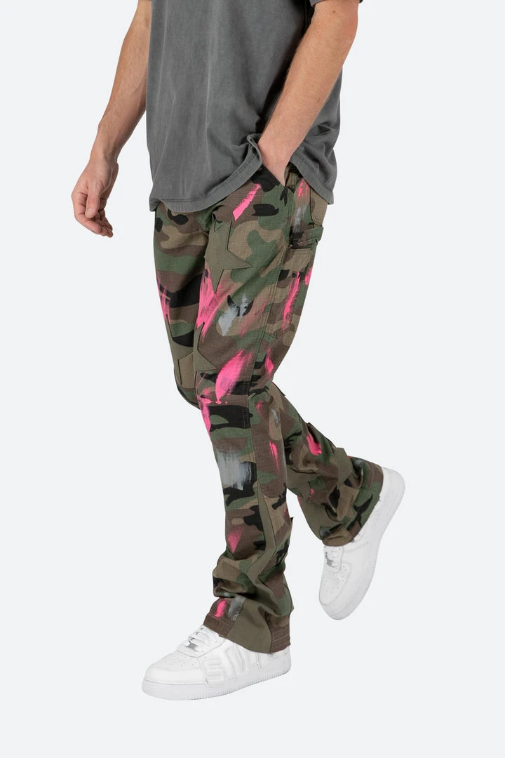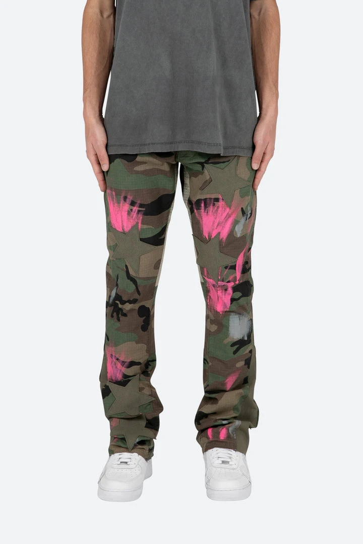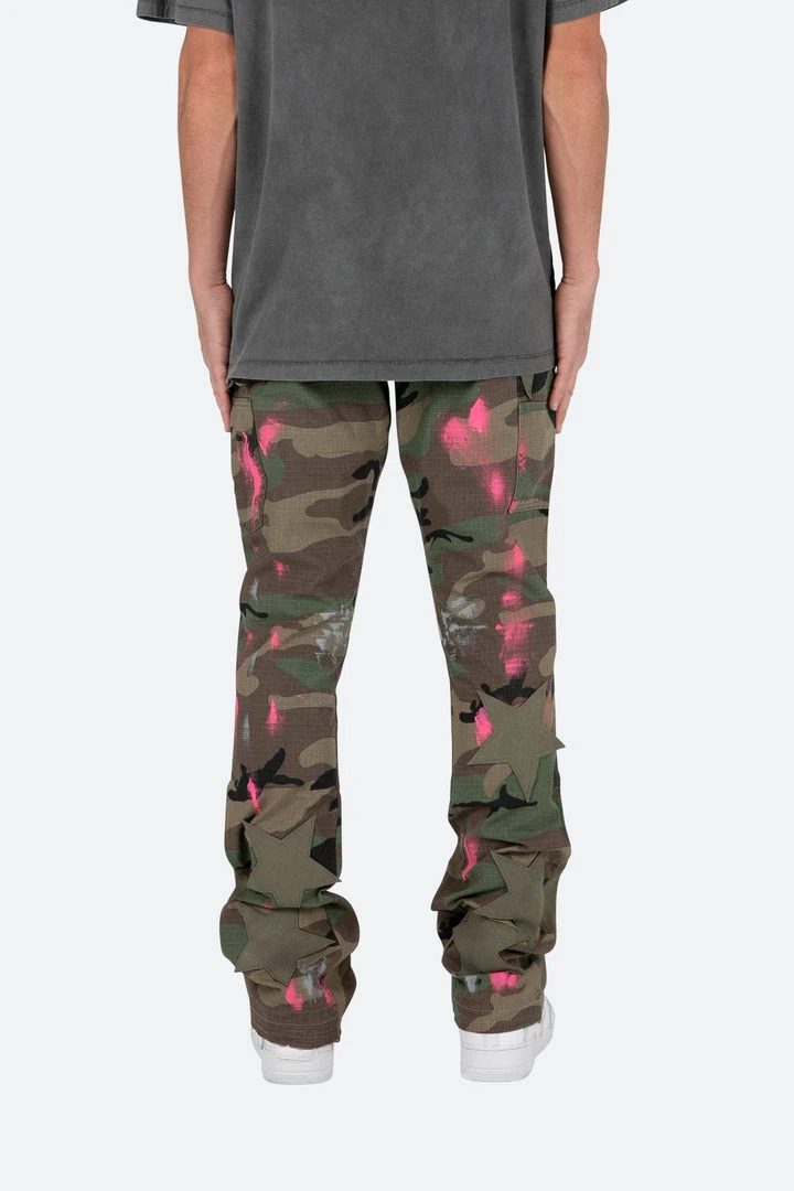 - Elevate your style with the Mnml B439 Star Flare Denim – Camo, featuring a unique camo pattern and a flared design for a bold, trendy look.
