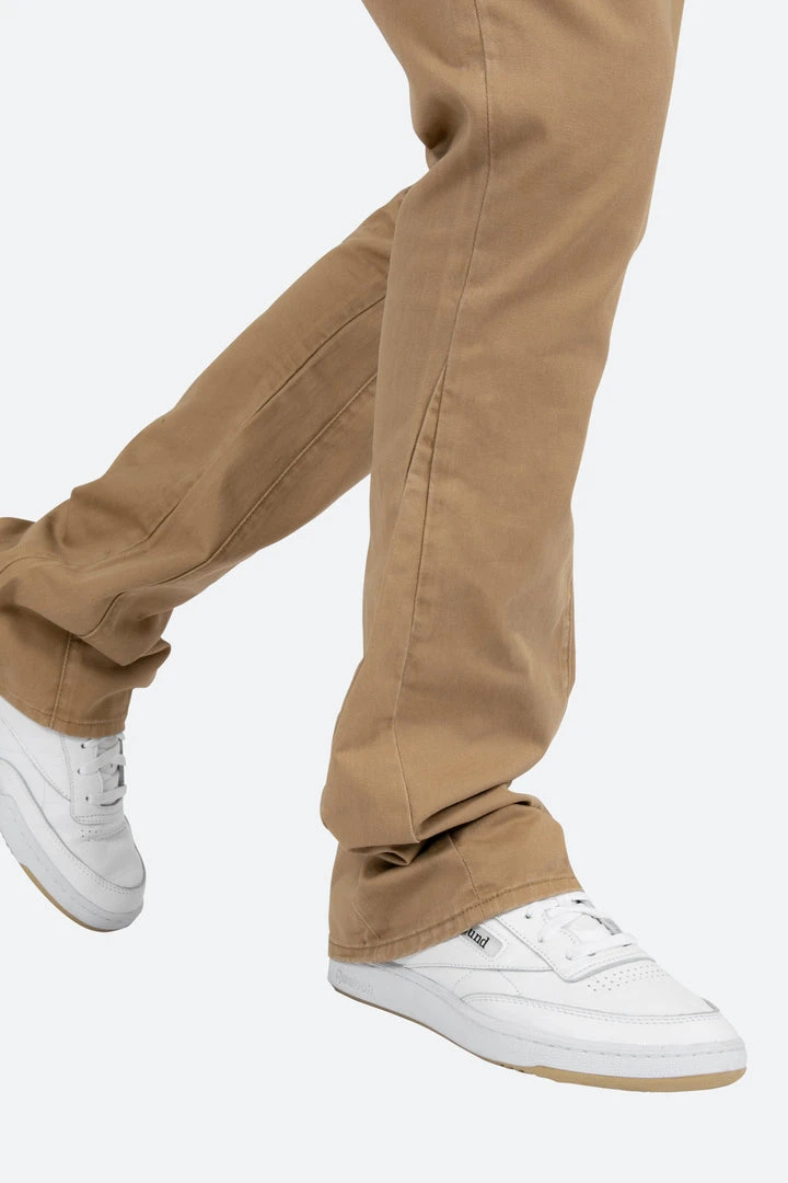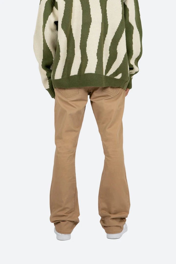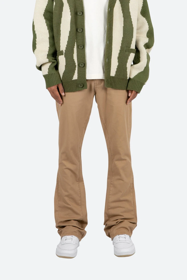 - Elevate your wardrobe with the Mnml B472 Twill Flare Pants in Khaki Denim. These high-waisted flare jeans are designed for both men and women, offering a versatile and stylish fit.