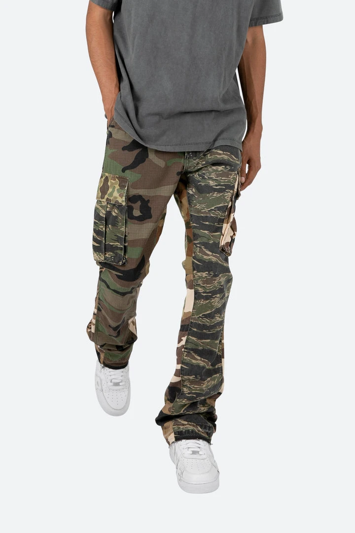 - Featuring a unique mixed camo pattern and a bootcut flare design, these cargo pants are perfect for casual outings, streetwear looks, or even semi-formal occasions.
