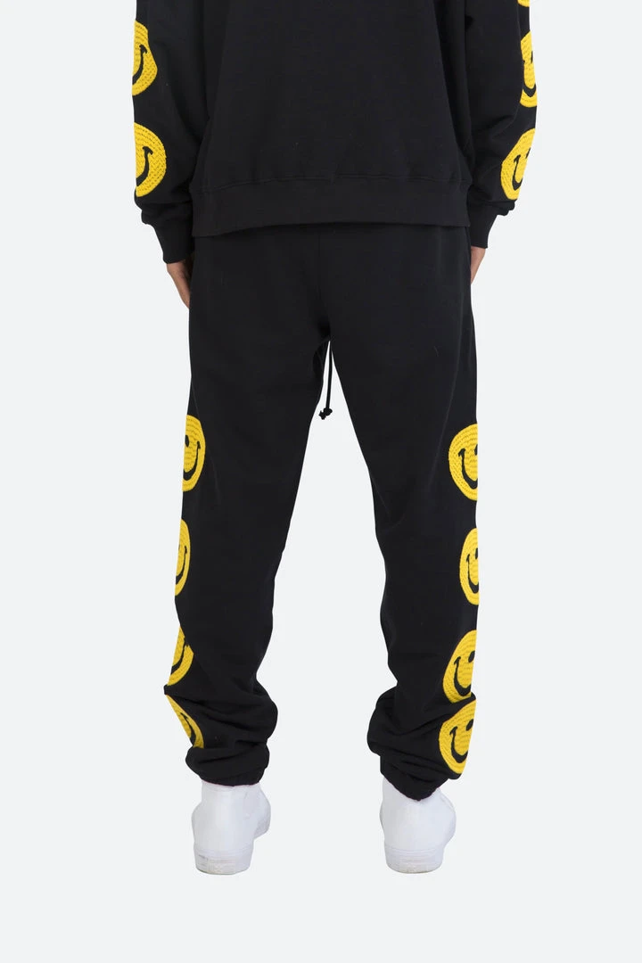 - Elevate your casual wardrobe with the Mnml Bottoms Crooked Smile Sweatpants in Black. Designed for ultimate comfort and style, these sweatpants are perfect for lounging or running errands.