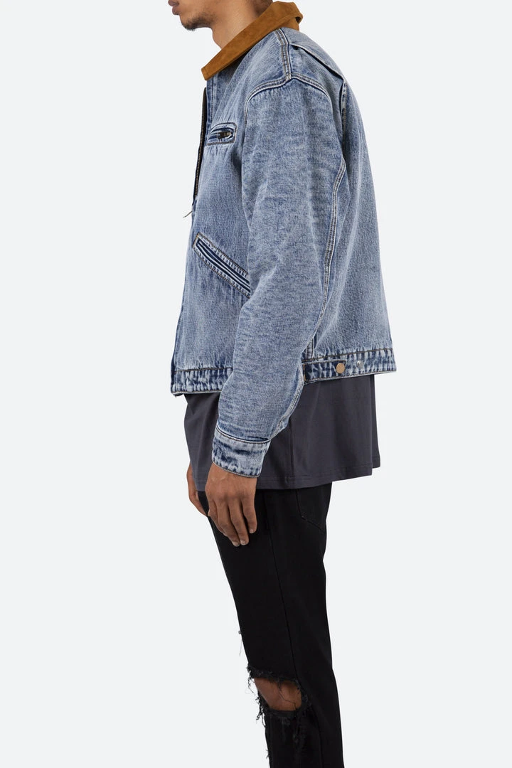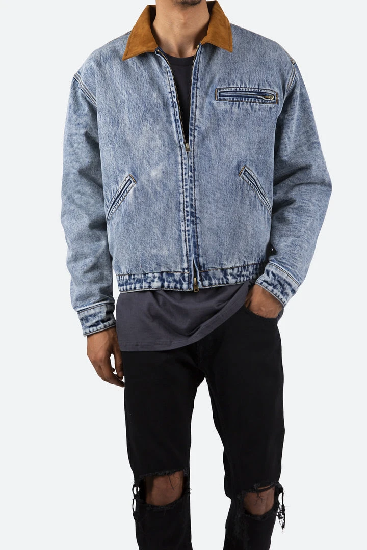 - Elevate your wardrobe with the Mnml Collared Work Jacket in Blue. Designed for both work and casual settings, this jacket combines style and functionality.
