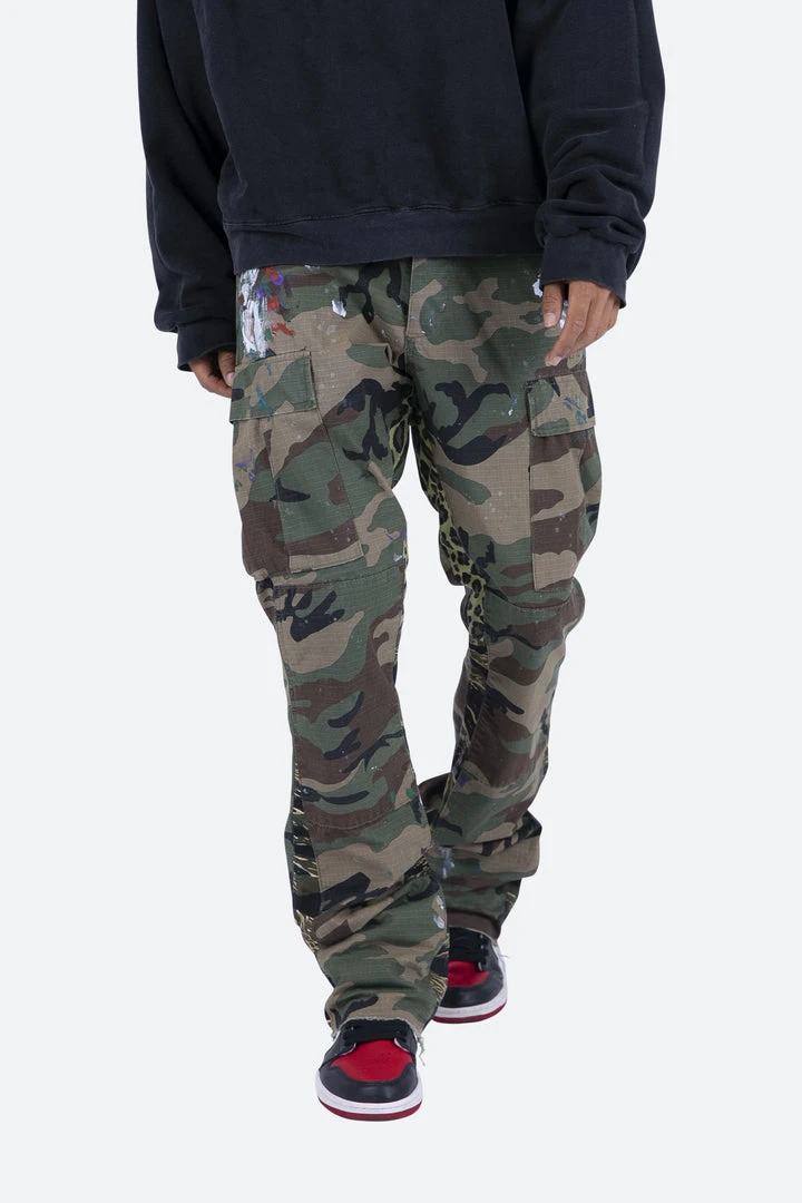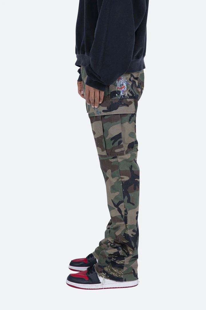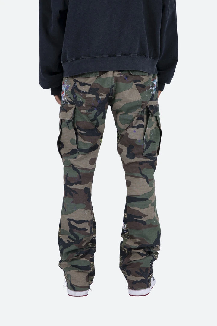 - Featuring a bootcut design and multiple utility pockets, these cargo pants are perfect for both casual outings and outdoor adventures. The woodland camo pattern adds a rugged, stylish edge.
