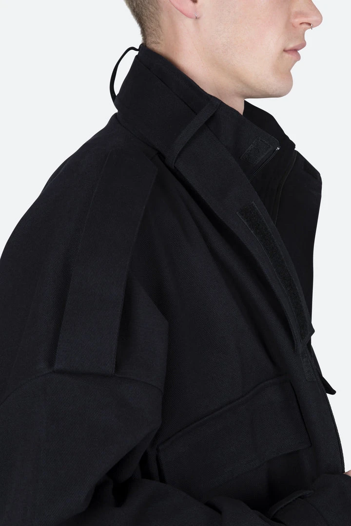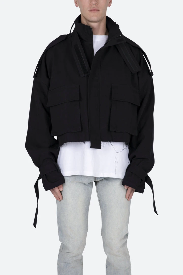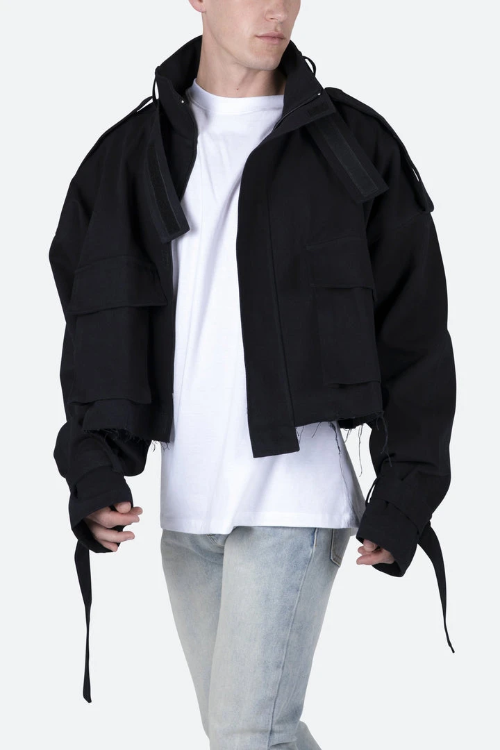 - Elevate your wardrobe with the Mnml Cropped M65 Jacket in Black. This stylish outerwear piece is designed for both men and women, offering a modern cropped silhouette that complements any outfit.