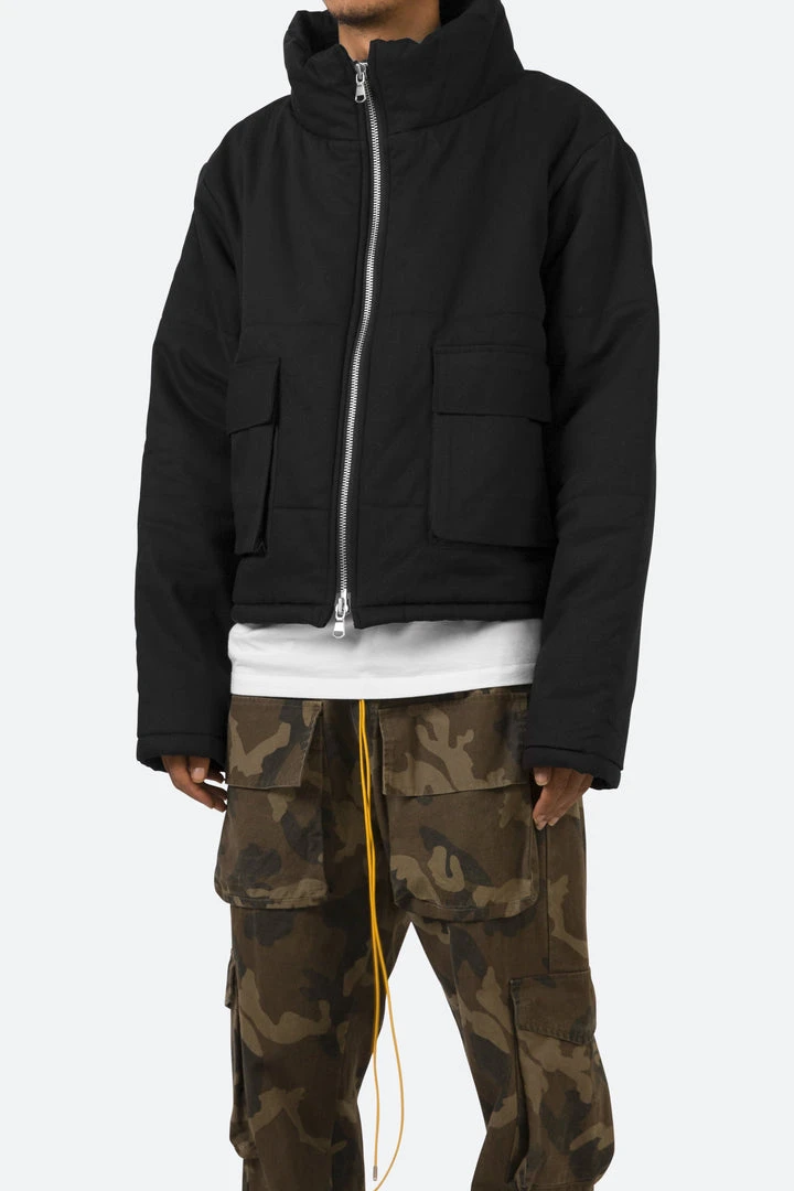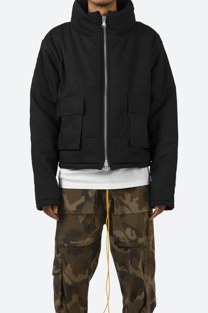 - The Mnml Cropped Puffer Jacket in Vintage Black is a must-have for your winter wardrobe. Its cropped design offers a modern, trendy look while keeping you warm.