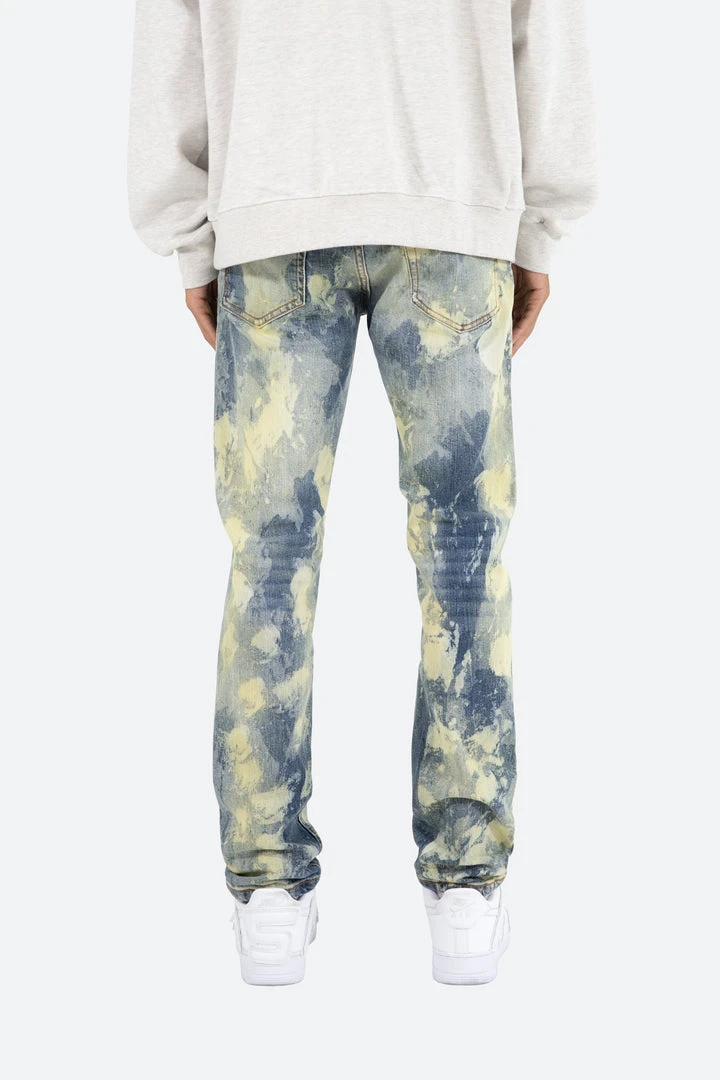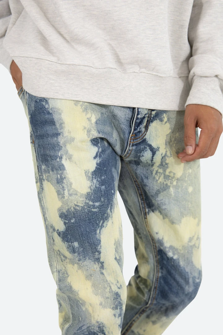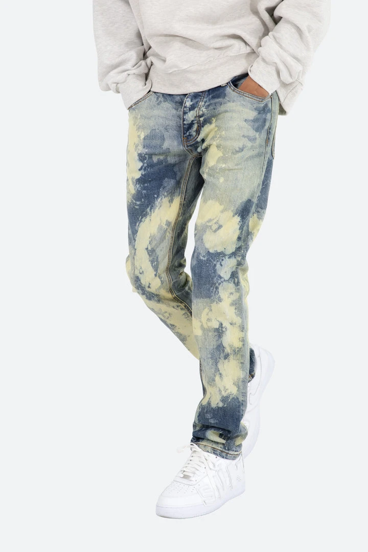 the D109 Acid Attack Denim is designed with our new D fit which is relaxed throughout with an extended inseam for stacking and features a warm, light wash, and finished with bleaching throughout.