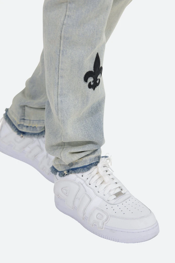 - Crafted from premium denim, the Mnml D112 Fleur Straight Denim offers durability and a stylish look. The blue wash adds a versatile touch to your wardrobe.
