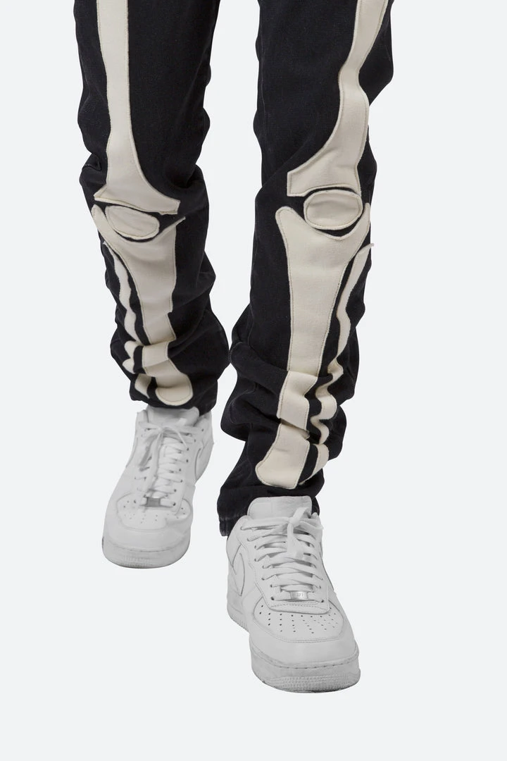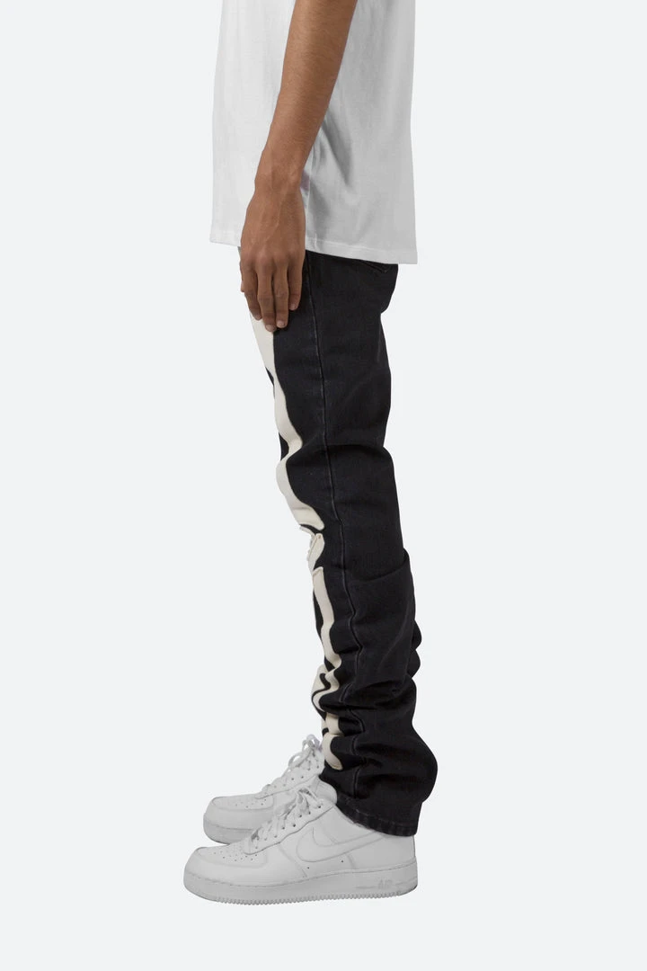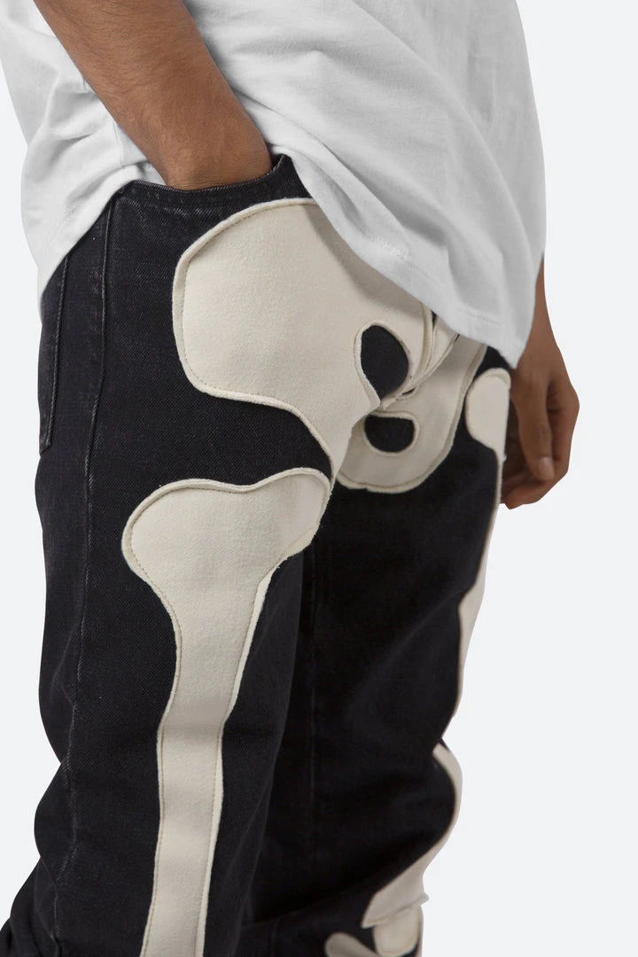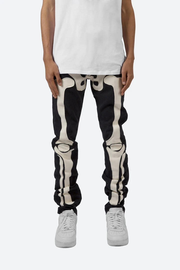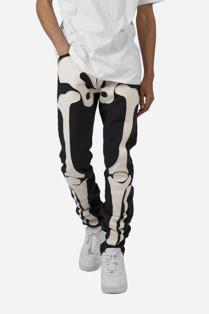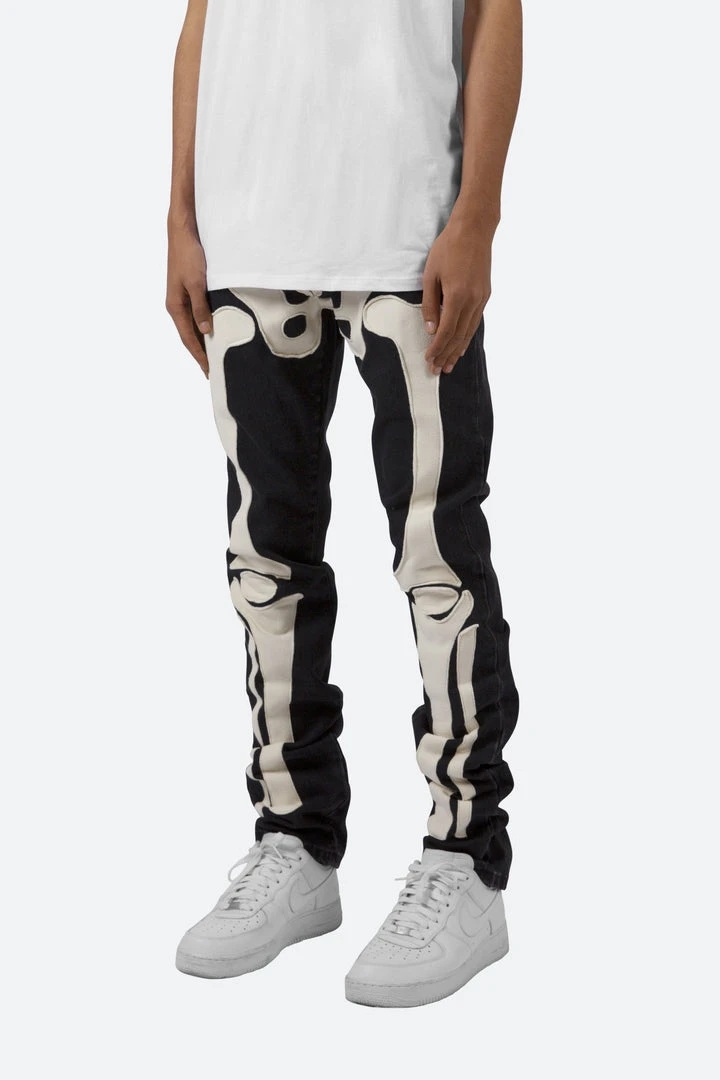 - Elevate your style with the Mnml D184 Skeleton Straight Relaxed Denim Jeans. Featuring a unique black and white skeleton design, these jeans are perfect for a bold, modern look.