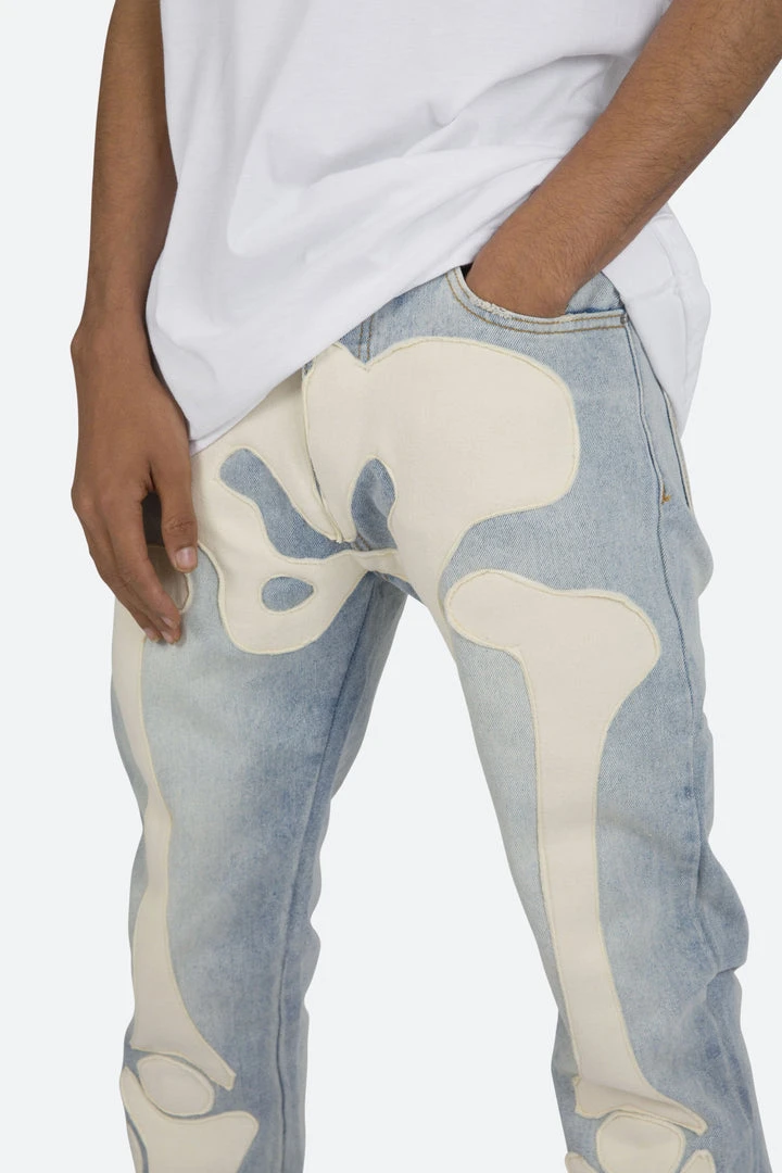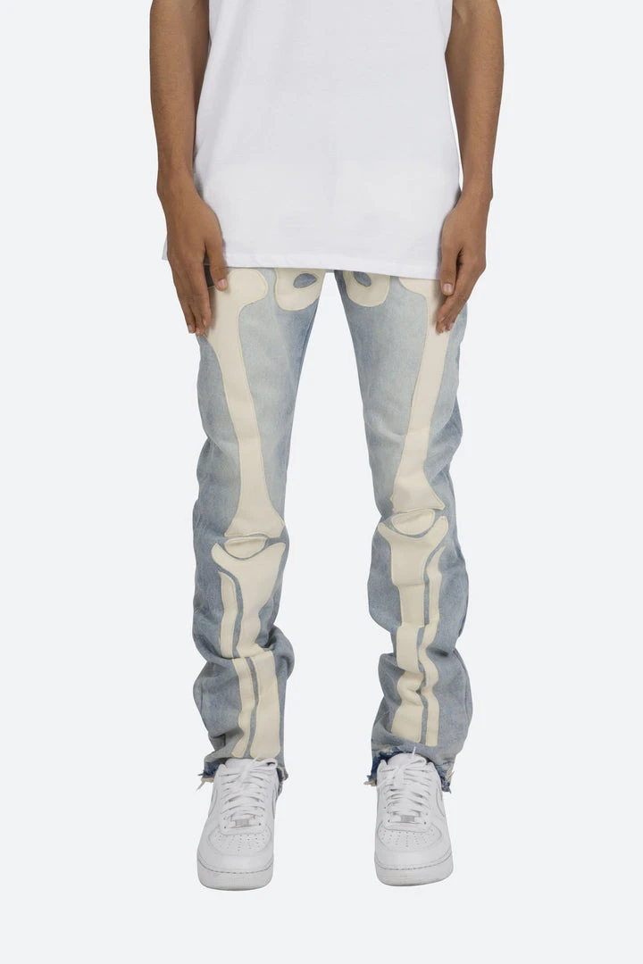 - Elevate your streetwear style with the Mnml D184 Skeleton Straight Relaxed Denim Jeans. Featuring a unique skeleton design, these jeans are perfect for a casual yet edgy look.
