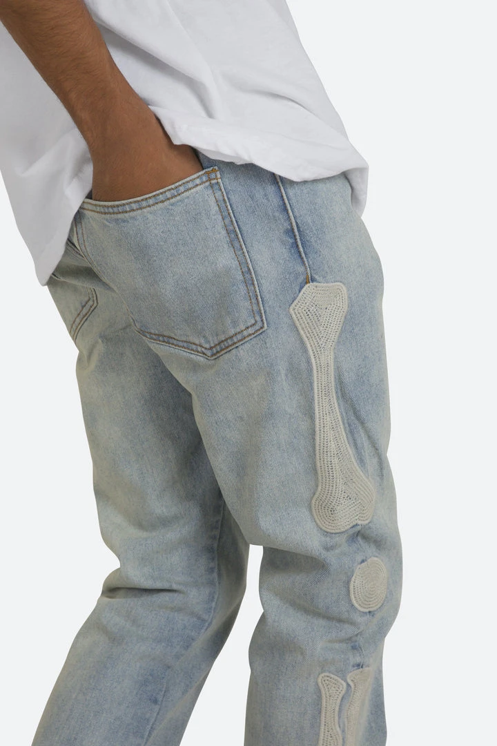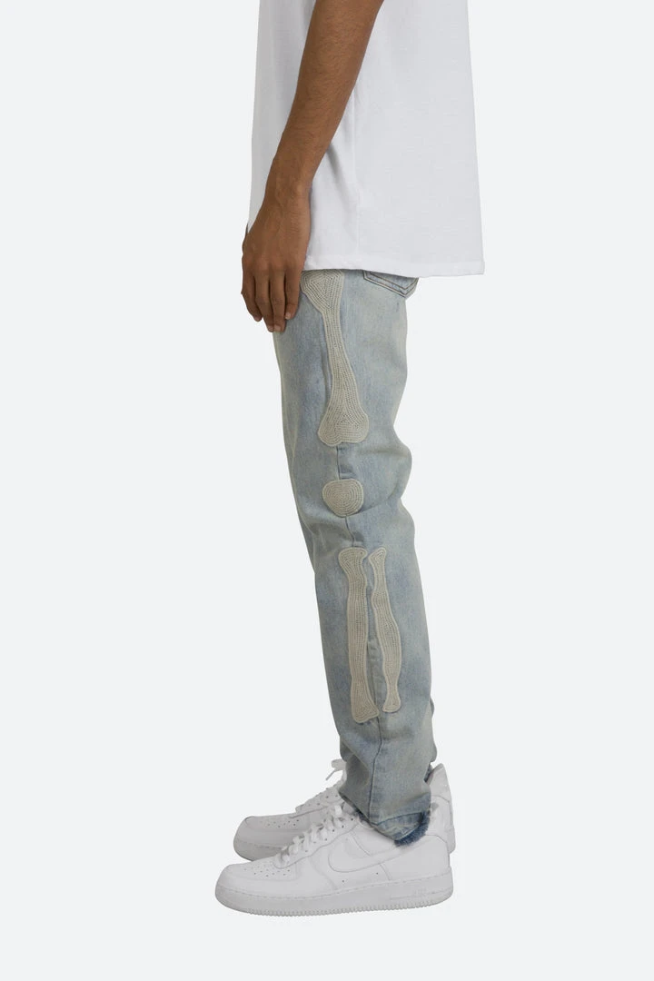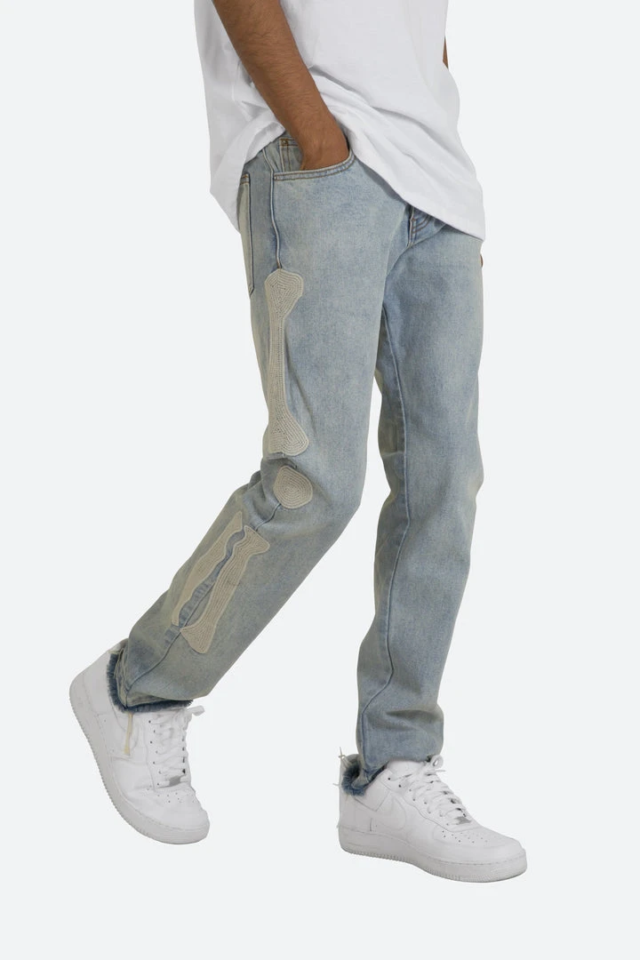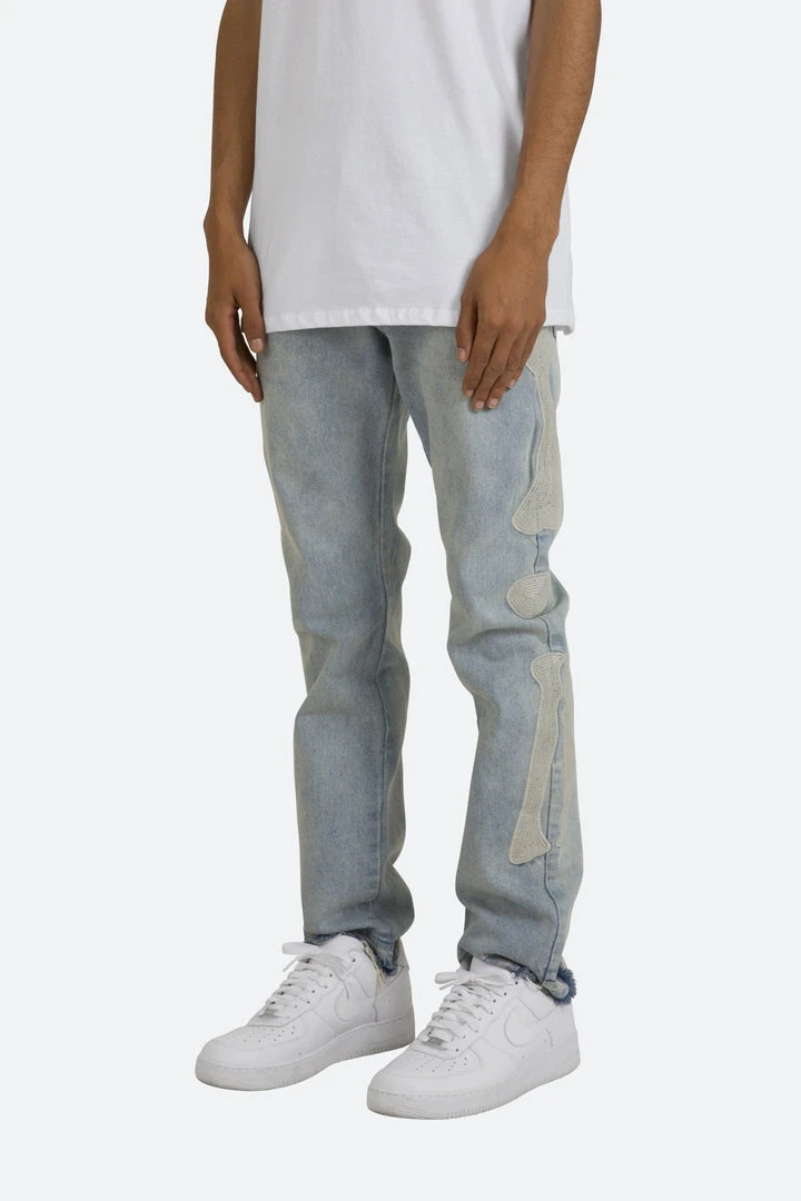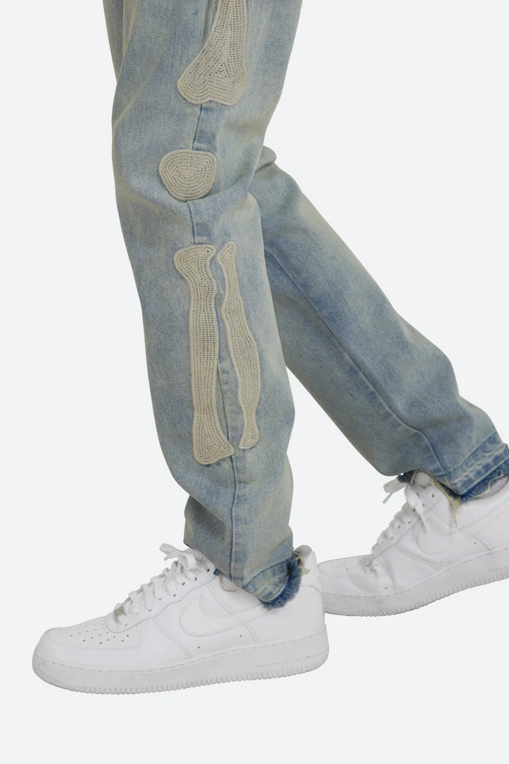 - Elevate your denim game with the Mnml D199 Skeleton Straight Denim. Perfect for casual outings or a night out, these jeans are a must-have for any fashion-forward individual.