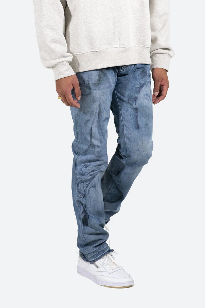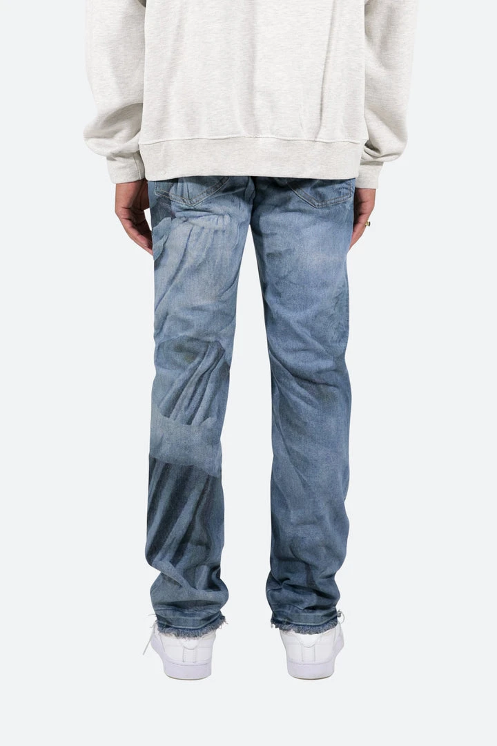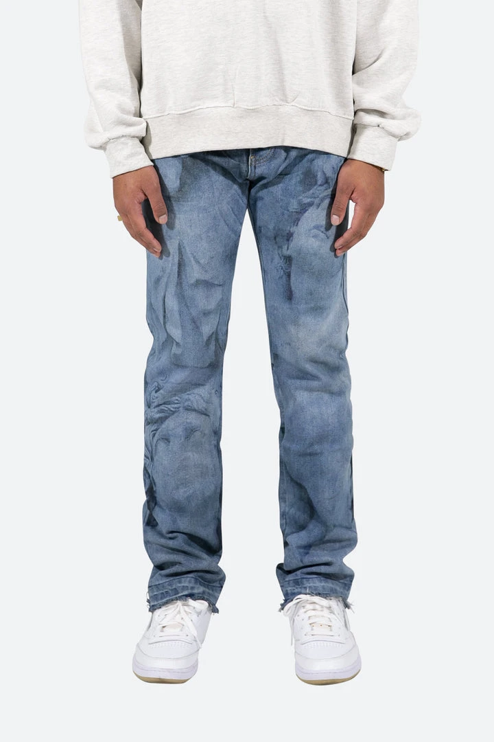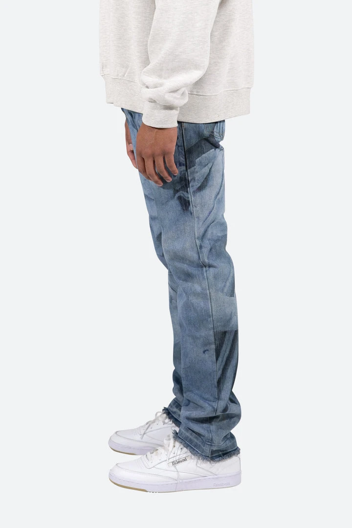 - Experience ultimate comfort with the Mnml D200 Overlay Straight Denim in Blue. Designed with a relaxed fit, these jeans are perfect for everyday wear.