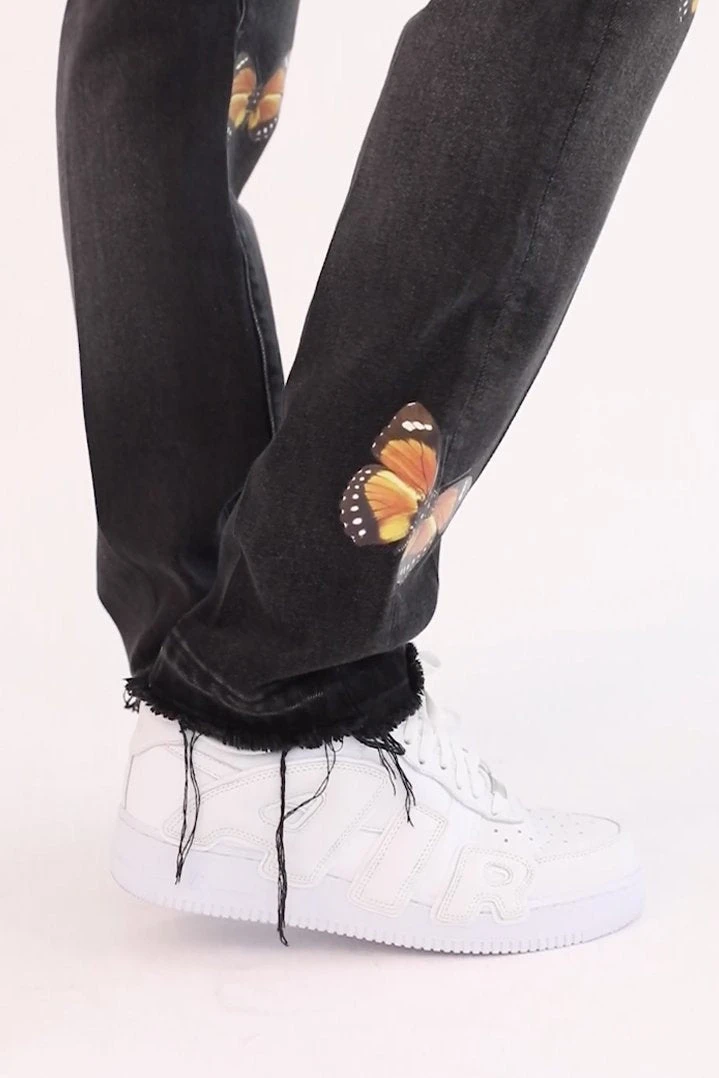 - Experience ultimate comfort with the Mnml D223 Butterfly Straight Denim in Black. Designed with a relaxed fit, these jeans are perfect for everyday wear.