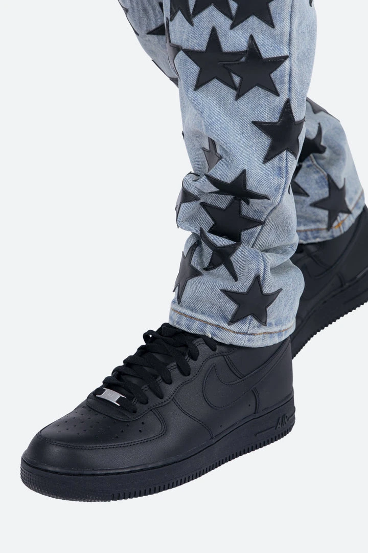 - Crafted from high-quality denim, the Mnml D270 Star Straight Denim offers durability and a sleek look. Available in Blue/Black, these jeans are a must-have for your wardrobe.