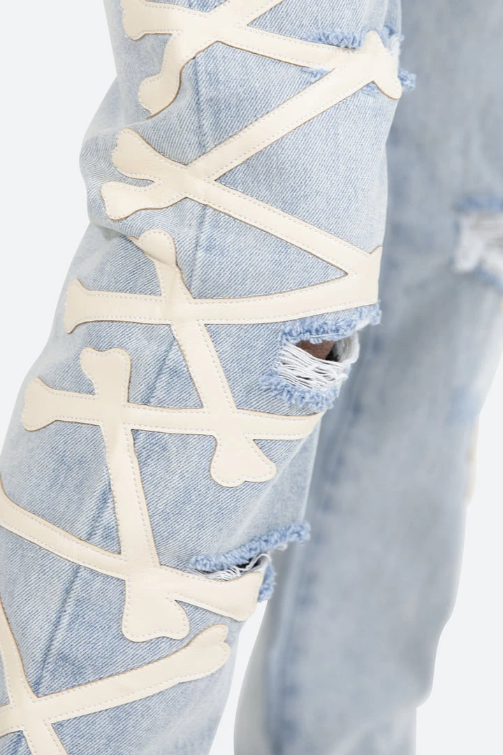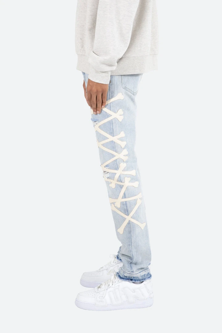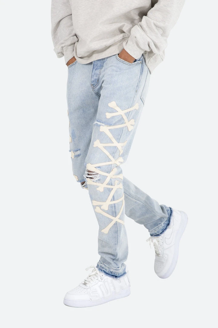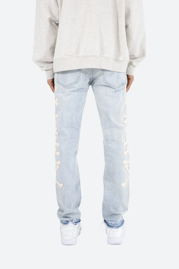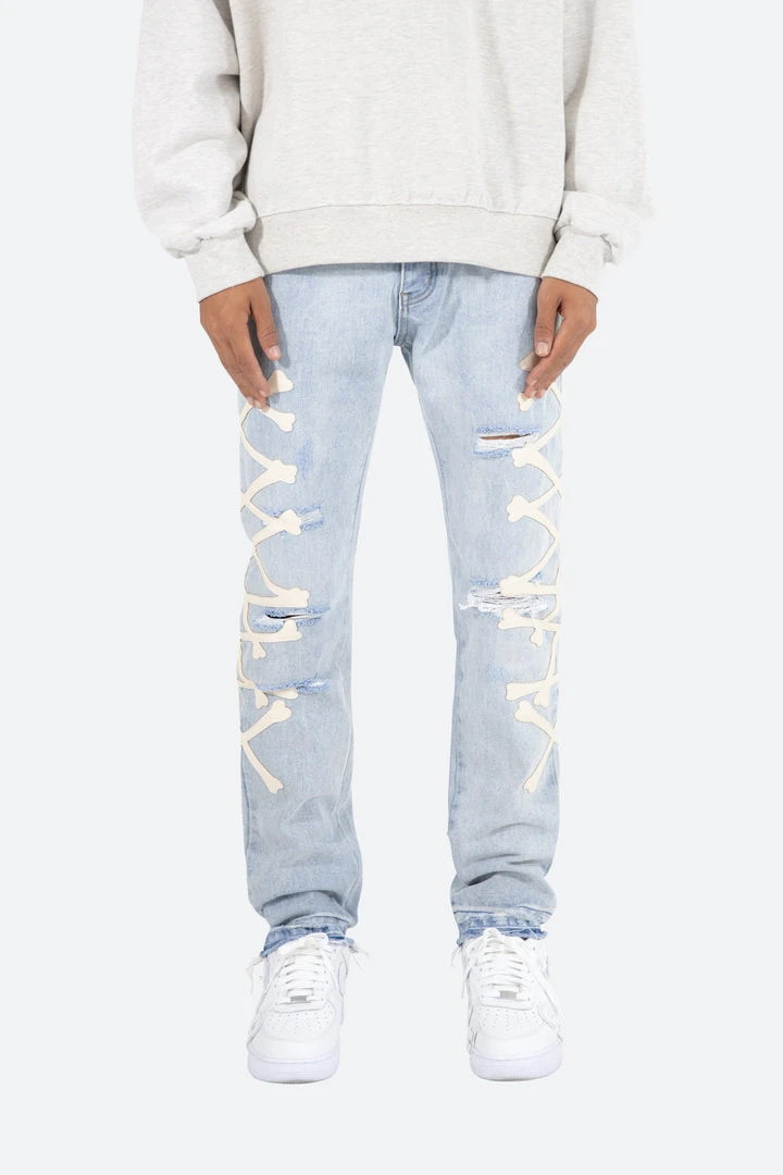 - Elevate your style with the Mnml D279 Skeleton Straight Denim in Blue/White. Designed for a relaxed fit, these jeans offer both comfort and a modern aesthetic.