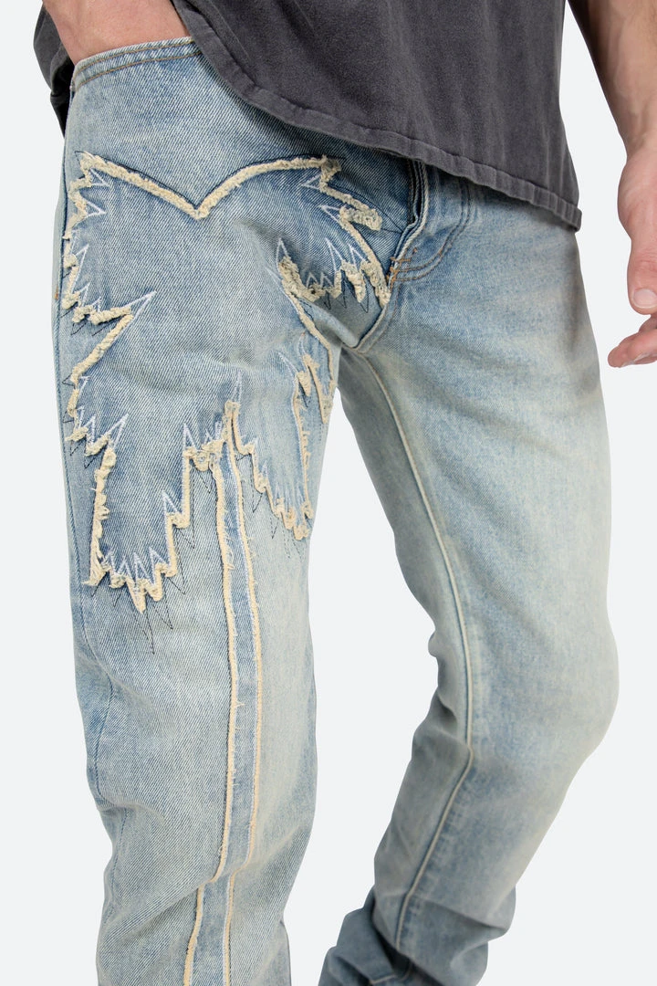 - Crafted from high-quality denim, the Mnml D430 Palm Straight Denim offers durability and a stylish look. The blue shade adds a versatile touch to your wardrobe.