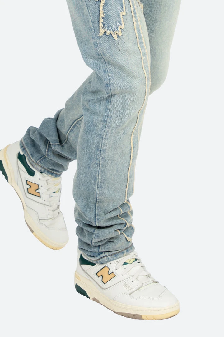 - Experience ultimate comfort with the Mnml D430 Palm Straight Denim in Blue. Designed with a relaxed fit, these jeans are perfect for everyday wear.