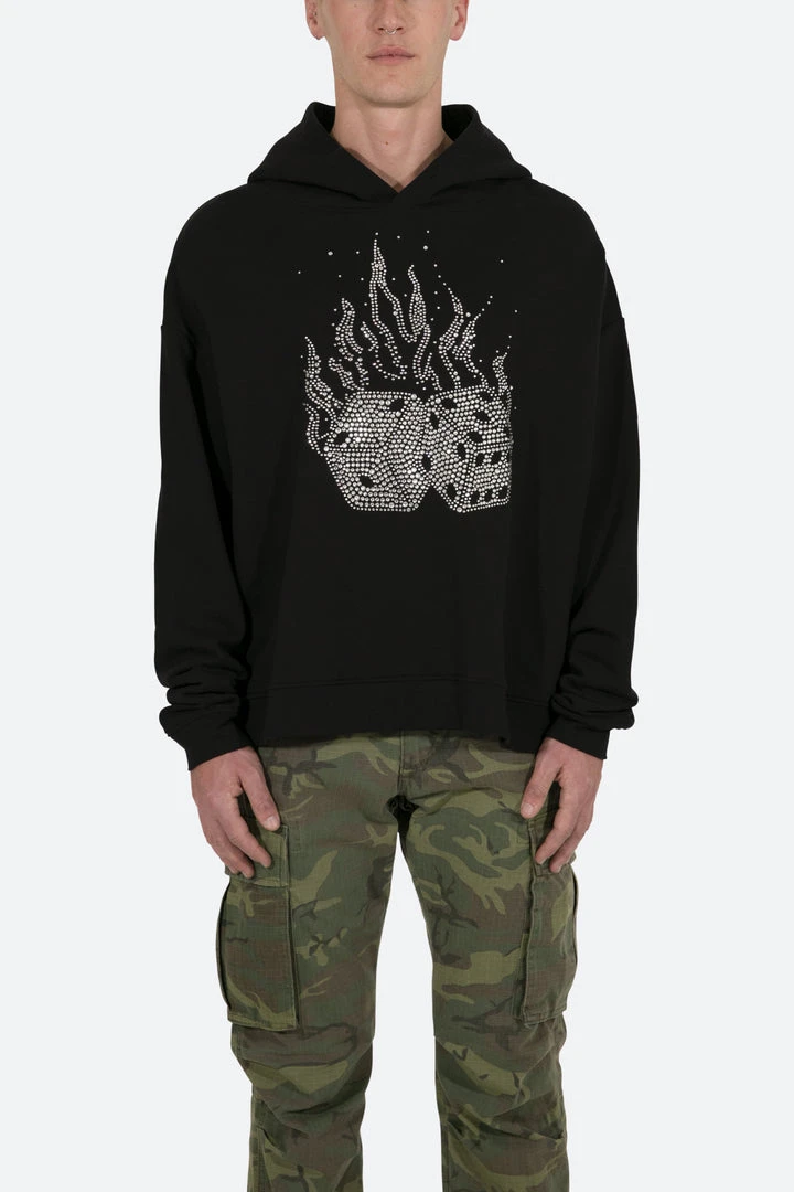 - Elevate your streetwear style with the Mnml Dice Cropped Hoodie in Black. Designed for both men and women, this hoodie offers a sleek, cropped fit that pairs perfectly with high-waisted jeans or joggers.
