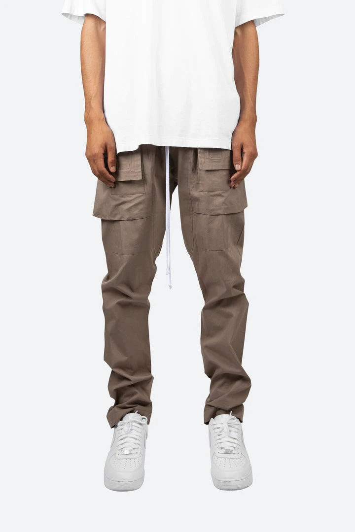 - Elevate your style with the Mnml Drop Crotch Cargo Pants in Stone. Designed for a modern, relaxed fit, these pants are perfect for casual outings or streetwear fashion.