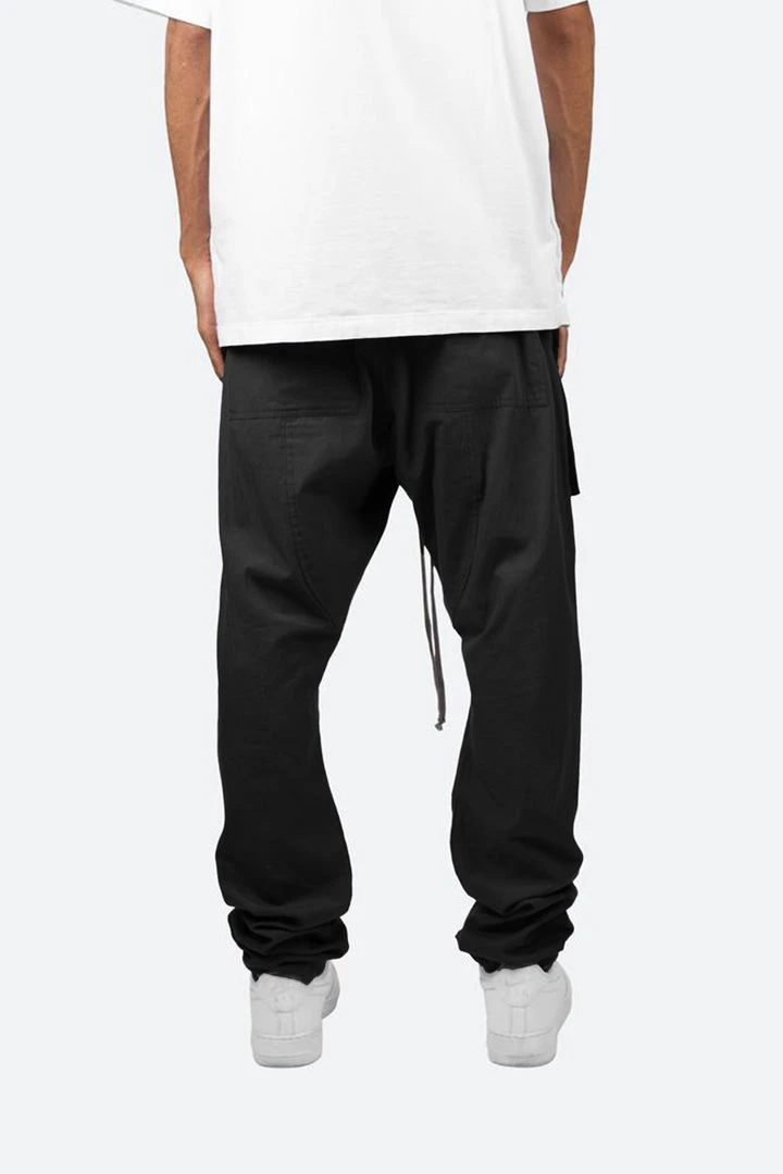 - Elevate your streetwear style with the Mnml Drop Crotch Cargo Pants. Designed for comfort and versatility, these black cargo pants feature a drop crotch design and multiple utility pockets.