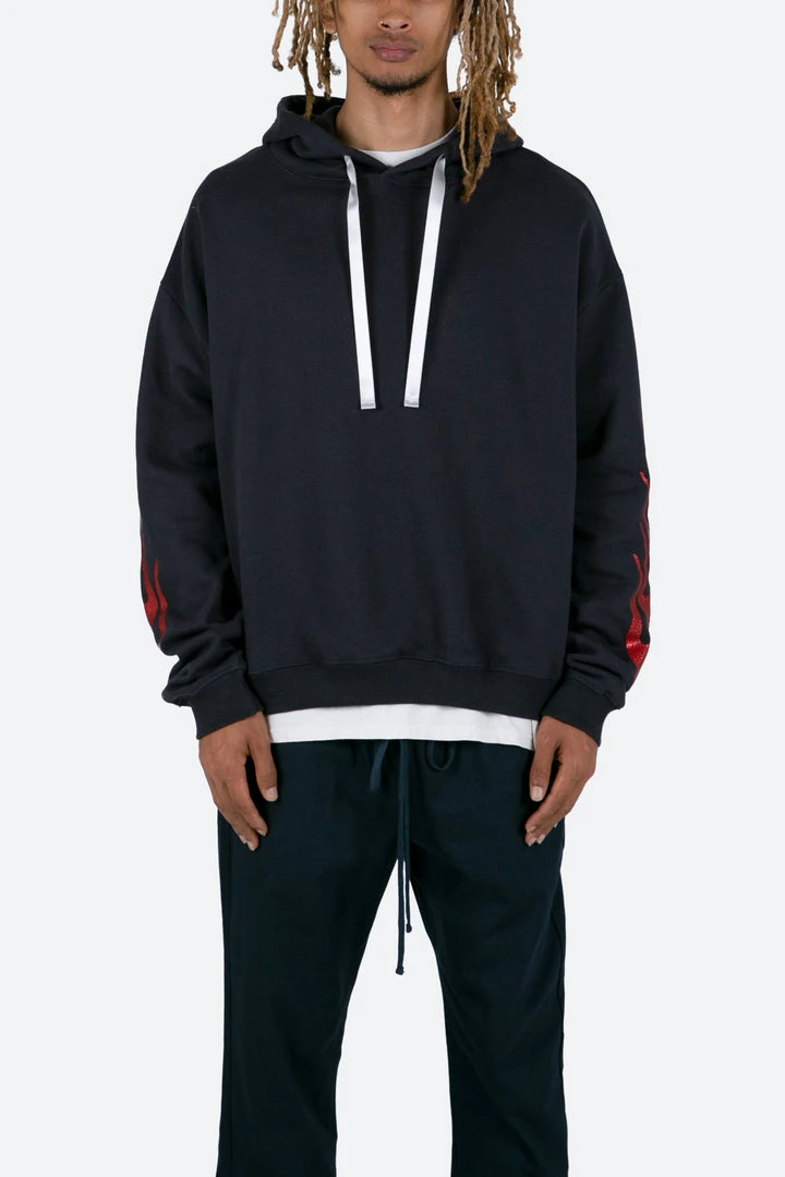 - Elevate your casual wardrobe with the Mnml Flame Cropped Hoodie in Black. This stylish hoodie features a cropped design, perfect for pairing with high-waisted jeans or skirts.