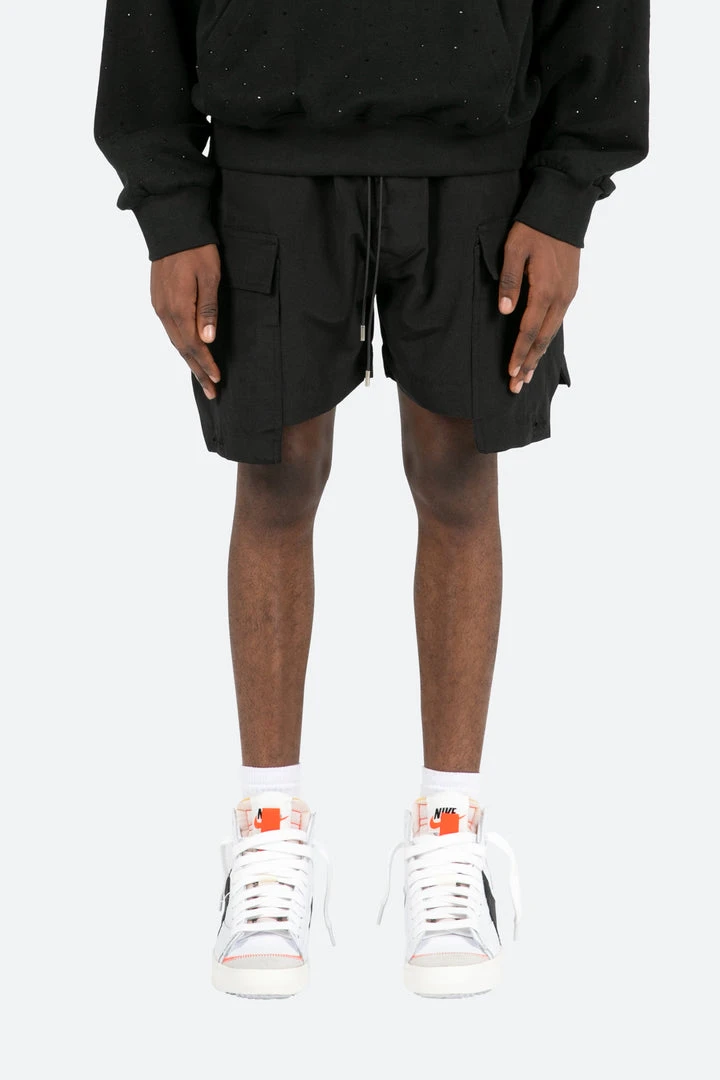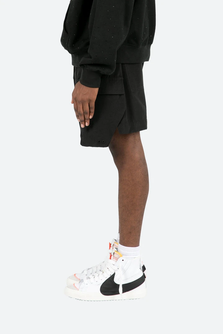 - Stay stylish and comfortable with the Mnml Geo Cargo Shorts in Black. Designed for modern men, these shorts combine functionality with a sleek, minimalist aesthetic.