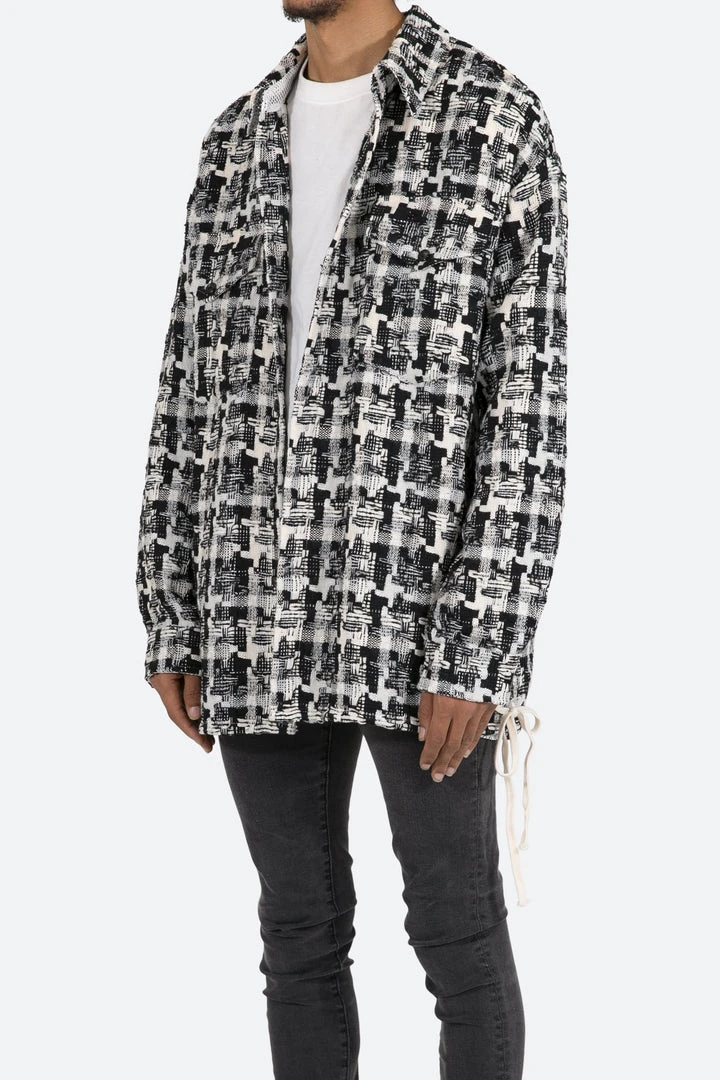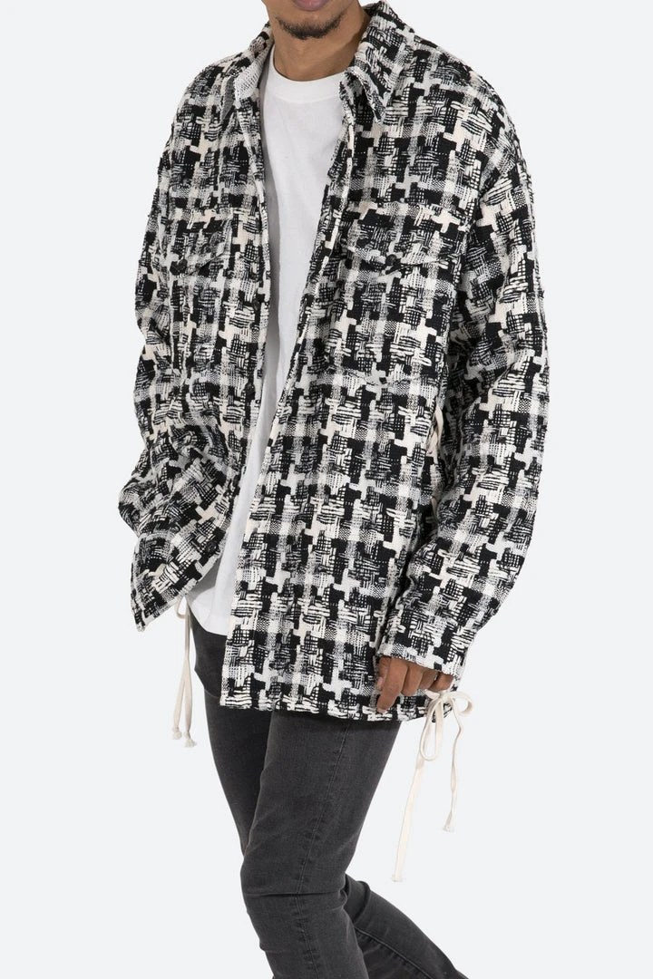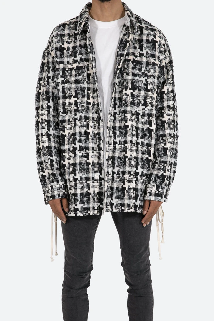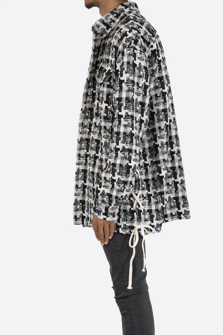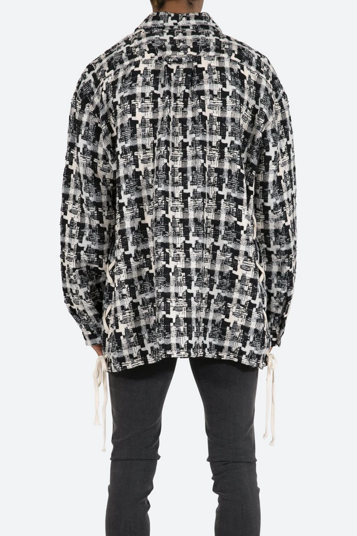 - Elevate your casual wardrobe with the Mnml Laced Loose Woven Shirt. Featuring a relaxed fit and a unique laced design, this black and white top is perfect for any laid-back occasion.