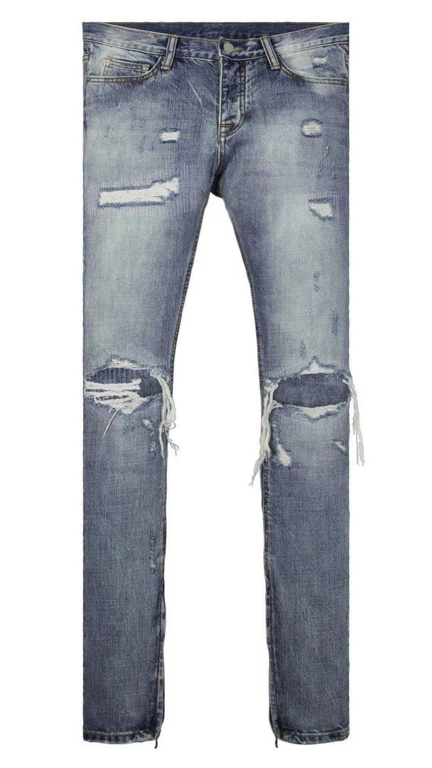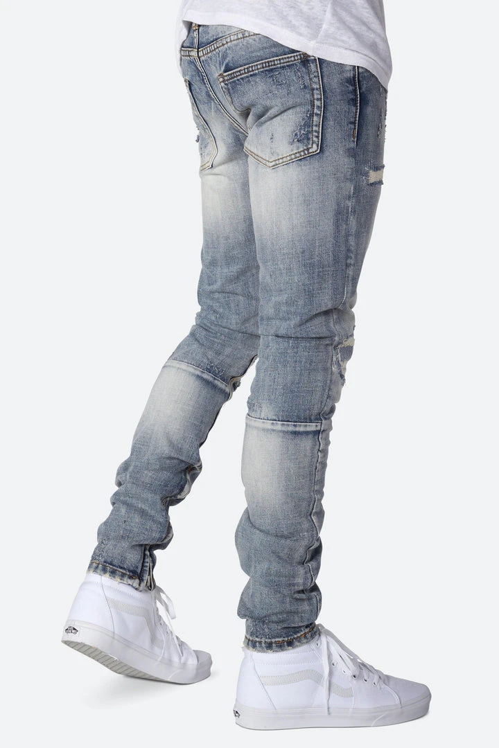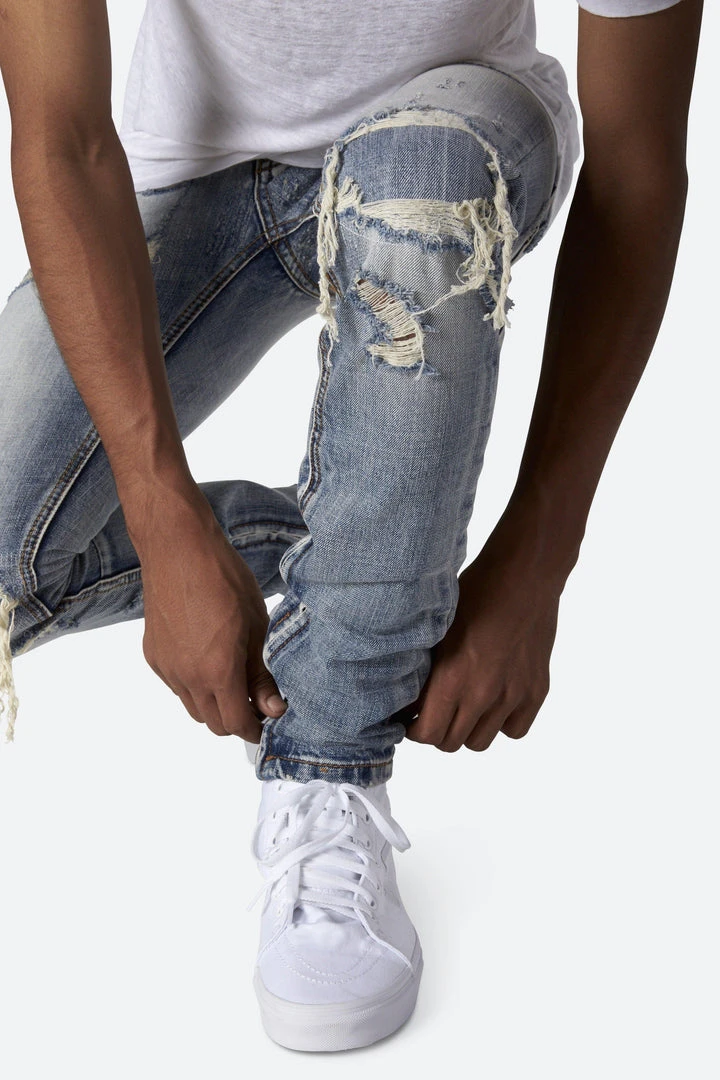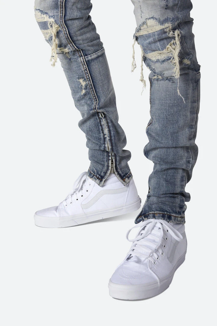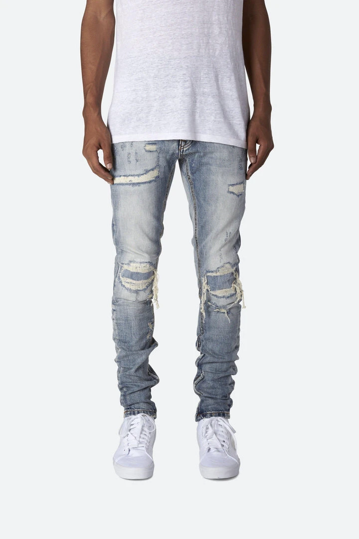 - Elevate your style with the Mnml M1 Repaired Slim Denim in Blue. Designed for the modern man, these jeans feature a slim fit and unique repaired detailing for a trendy, edgy look.