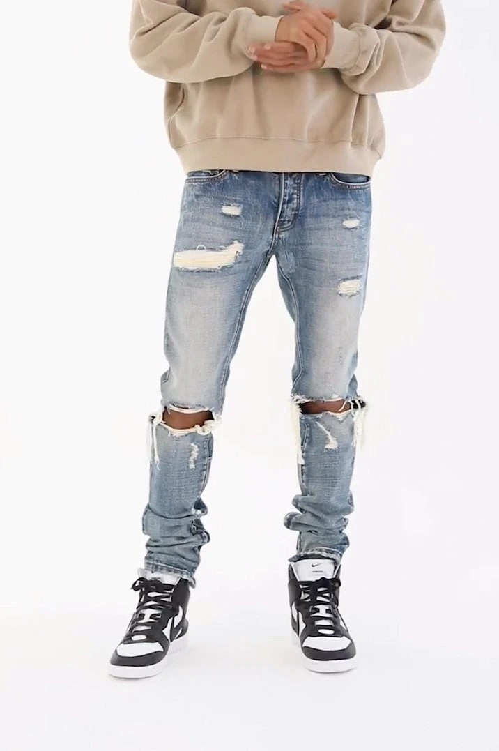 - Crafted from high-quality denim, the Mnml M1 jeans are durable and long-lasting. The blue wash offers a versatile look that pairs well with any outfit, making it a must-have in your wardrobe.