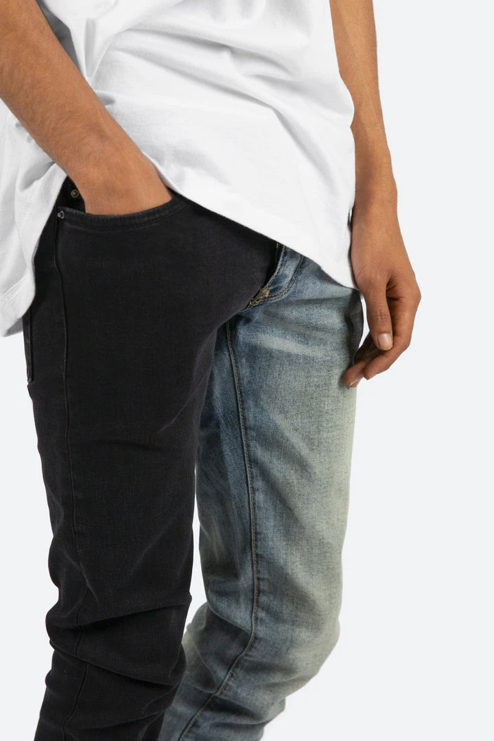 - Crafted from high-quality denim, the Mnml M307 Slim Denim Jeans are durable and long-lasting. The blue/black color adds versatility to your wardrobe, making it easy to pair with any outfit.
