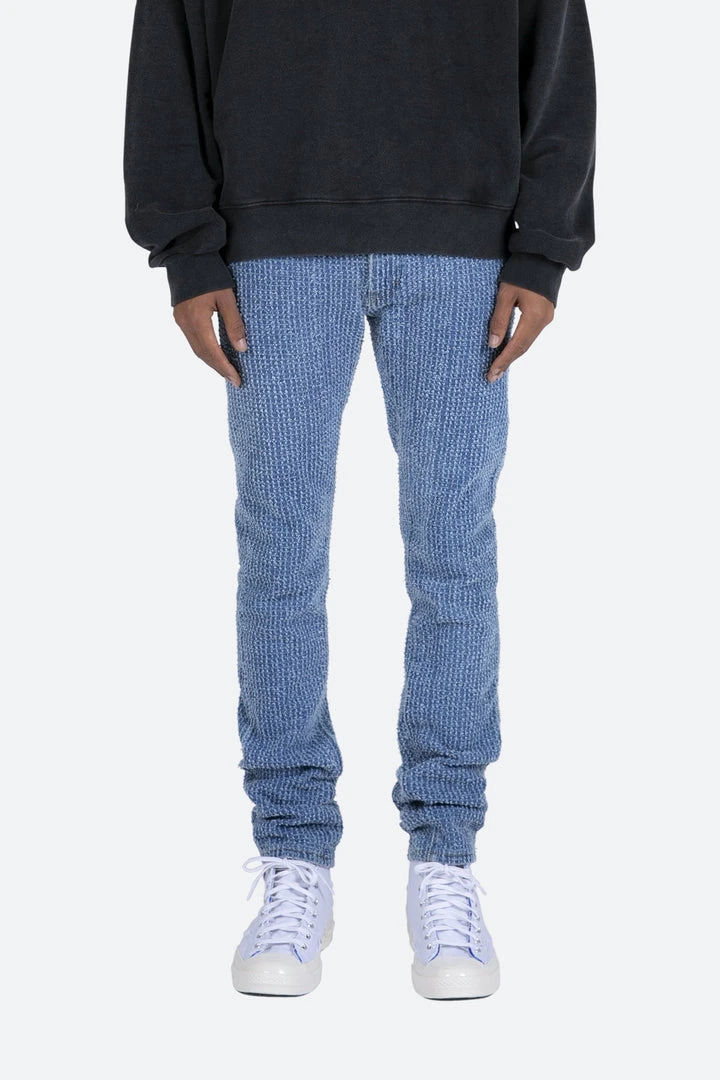 - Available in a classic blue shade, the Mnml M308 Jacquard Slim Denim Jeans are easy to pair with any top or shoes. Add a touch of sophistication to your everyday look with these premium jeans.