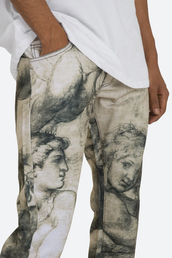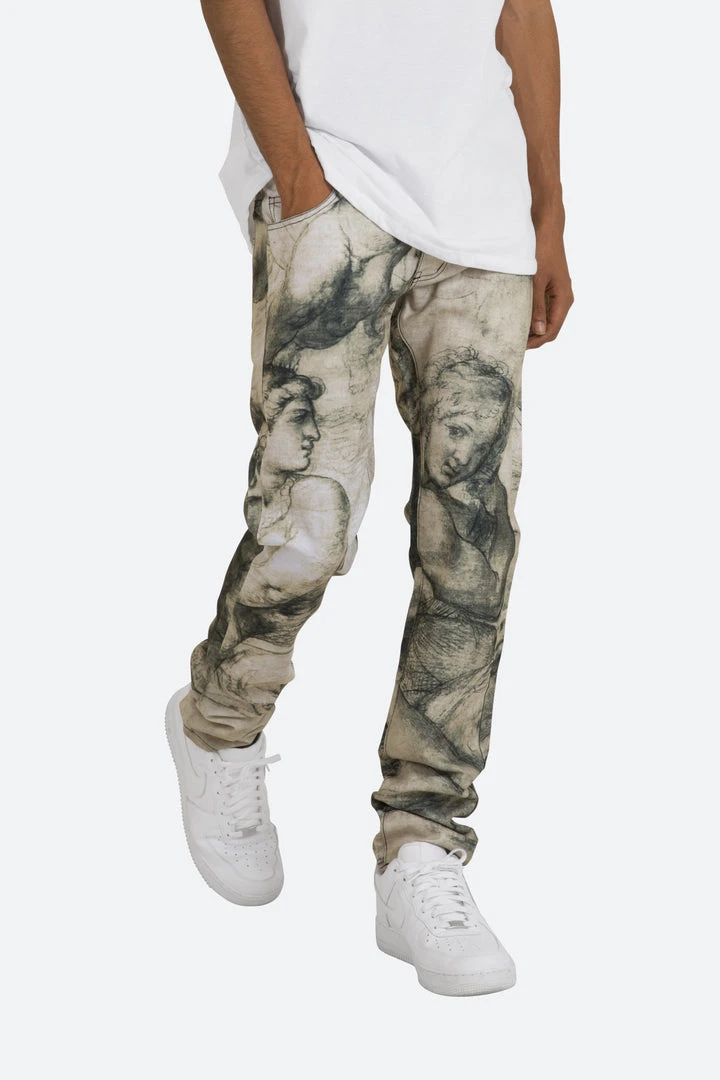 the M351 Art Denim is part of our new M300 line of zipperless M Denim. The M351 Art Denim features a relaxed fit through the thigh that tapers from the knee to the ankle, all-over sublimated artwork and finishes off with a traditional zipperless inseam.