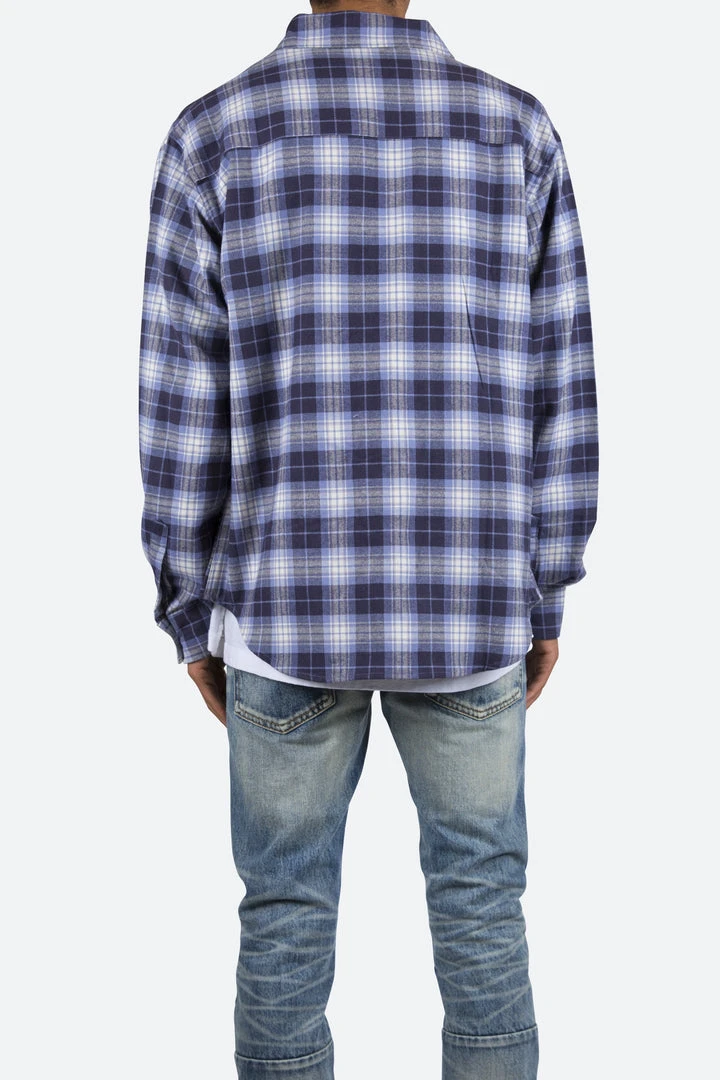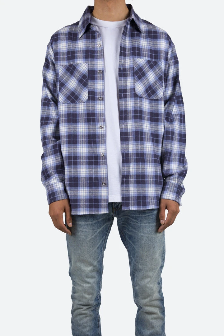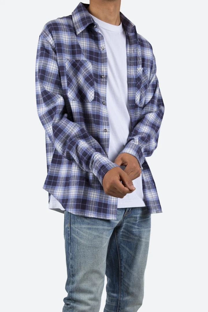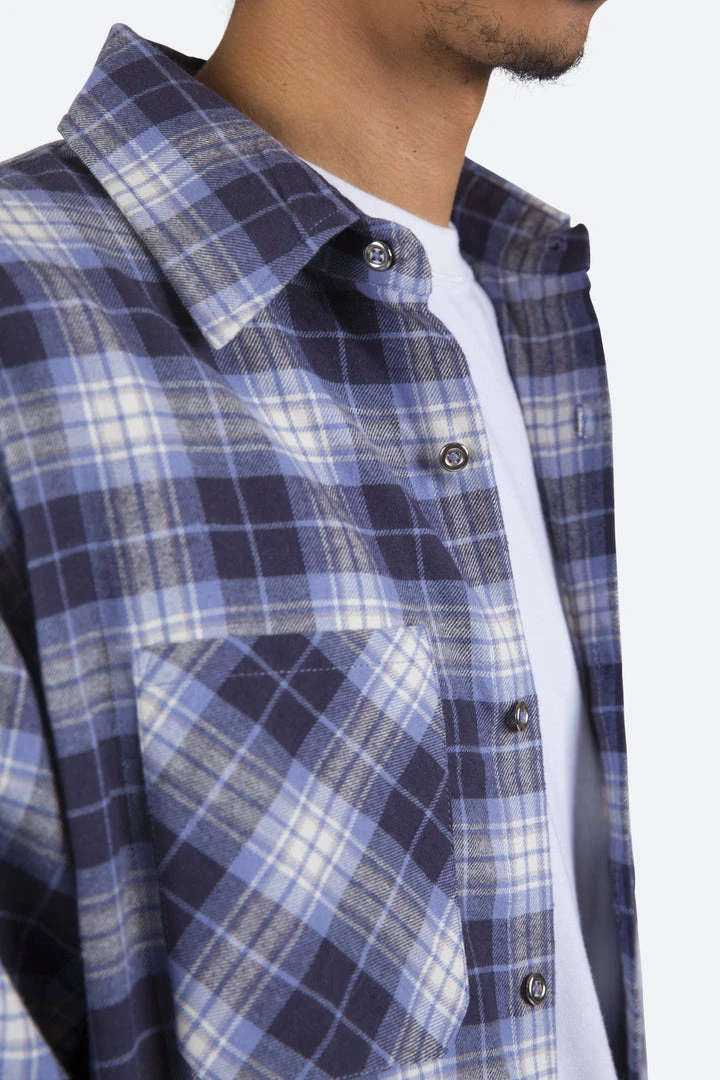- Elevate your casual wardrobe with the Mnml Metal Button Flannel Shirt in Blue/White. This premium shirt combines style and comfort, making it perfect for everyday wear.