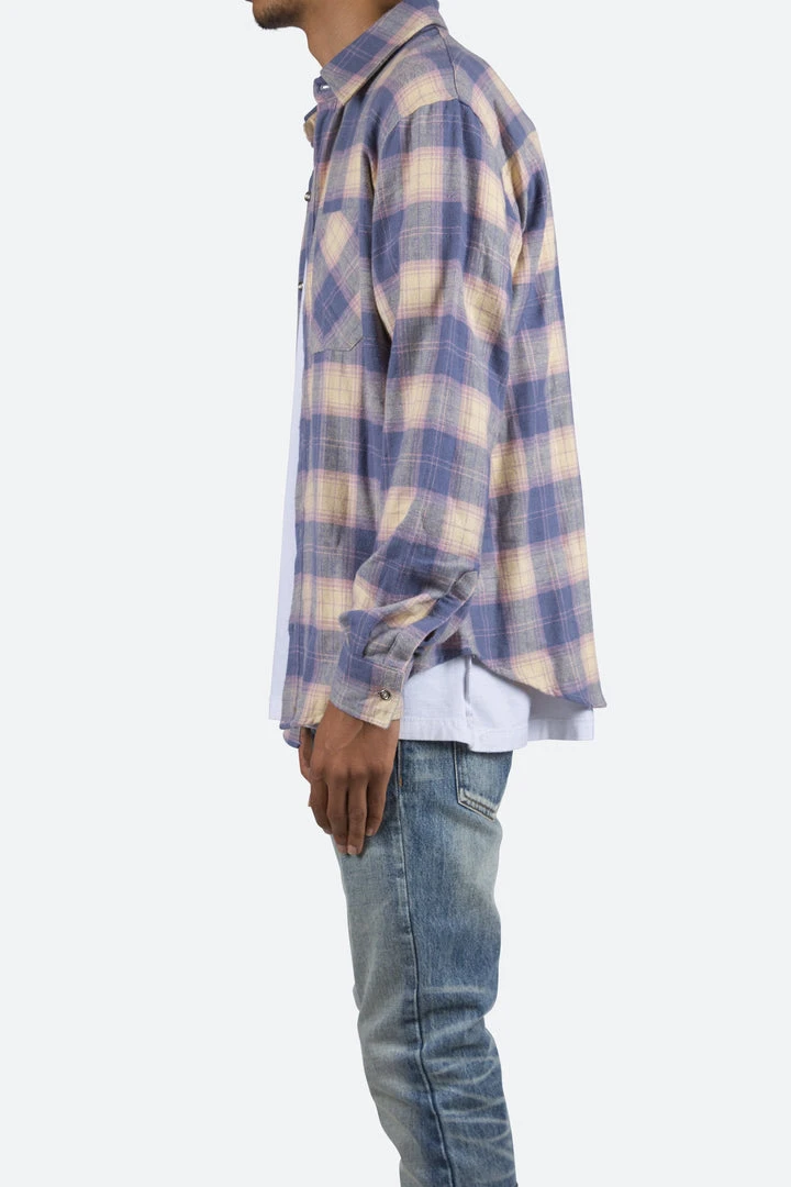 - Stylish and Comfortable: The Mnml Metal Button Flannel Shirt features a classic plaid design in a vibrant blue and yellow color scheme, perfect for adding a pop of color to your casual wardrobe.