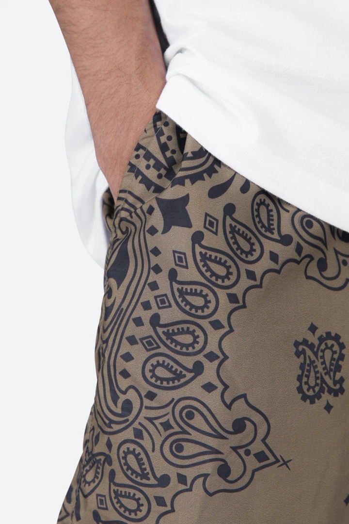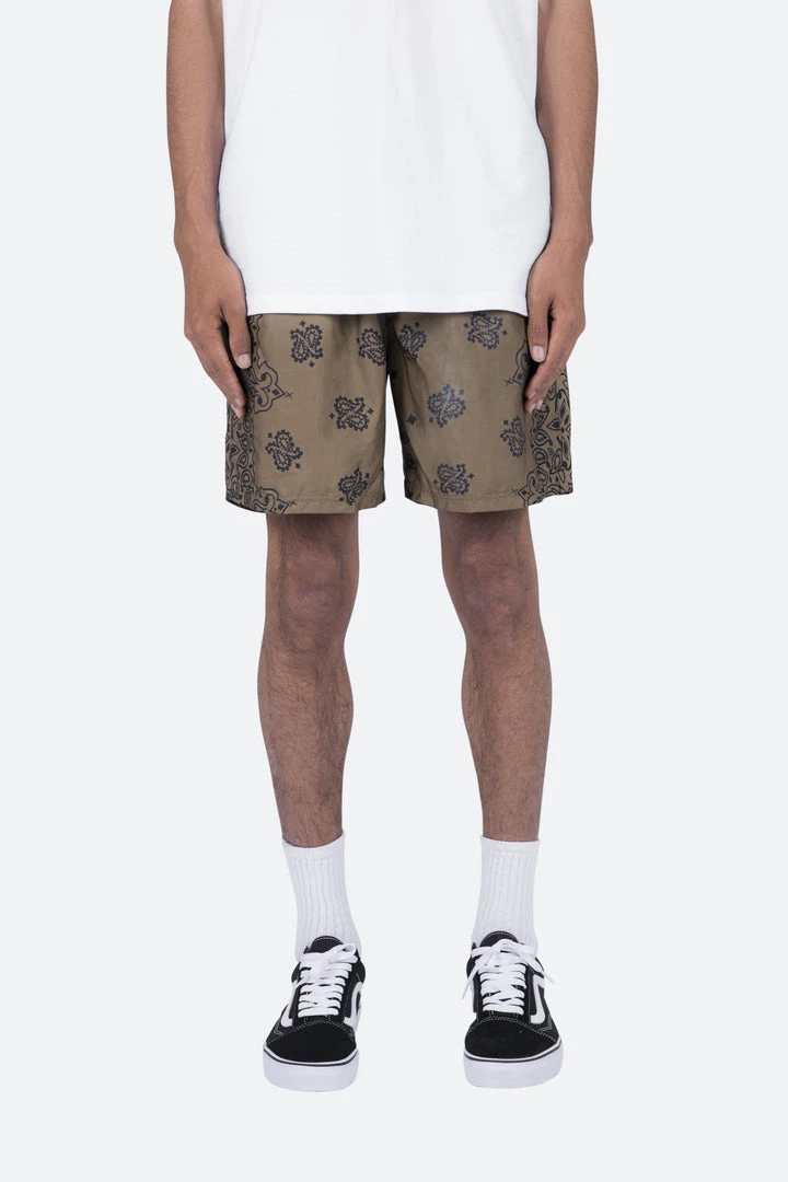 - Elevate your casual wardrobe with the Mnml Nylon Paisley Shorts. These stylish brown bottoms feature a unique paisley pattern, making them a standout piece for any outfit.