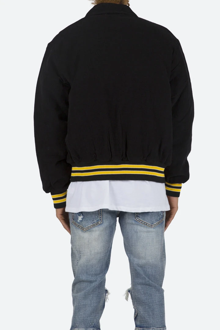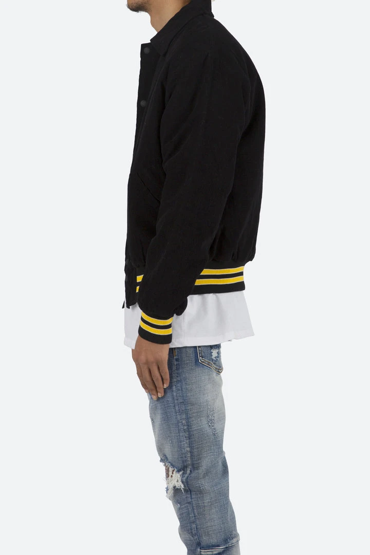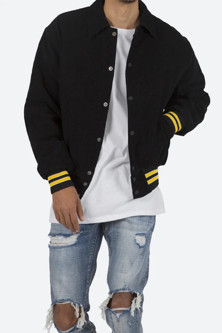 - Elevate your style with the Mnml Outerwear Corduroy Collar Jacket in Black/Yellow. This premium men’s jacket features a unique corduroy collar, adding a touch of sophistication to your wardrobe.