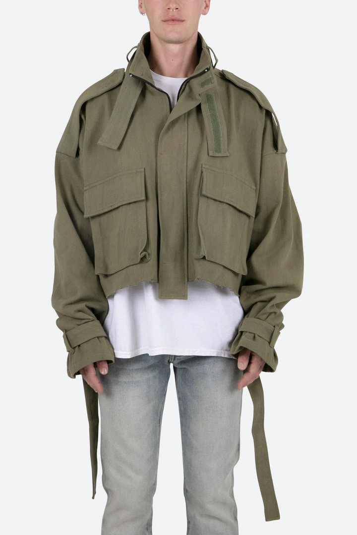 - Elevate your style with the Mnml Outerwear Cropped M65 Jacket in Olive. This trendy, lightweight jacket is designed for both men and women, offering a perfect blend of fashion and functionality.