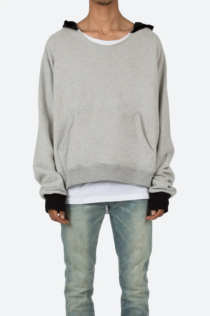 - Experience ultimate comfort with the Mnml Outerwear Cut Neck Hoodie in Grey. Made from high-quality materials, this hoodie offers a relaxed fit and a modern cut neck design.