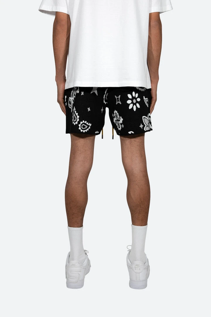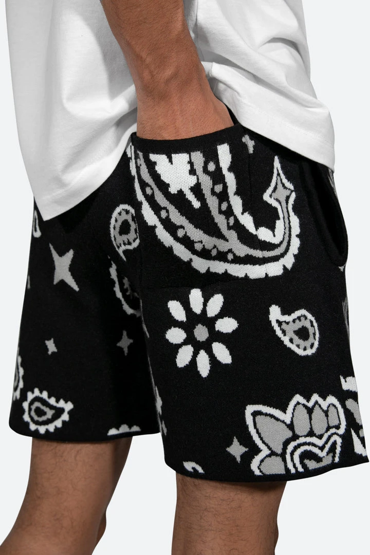 - Elevate your style with the Mnml Paisley Knit Shorts in Black. These trendy shorts feature a unique paisley pattern, offering a modern and fashionable look for any casual occasion.
