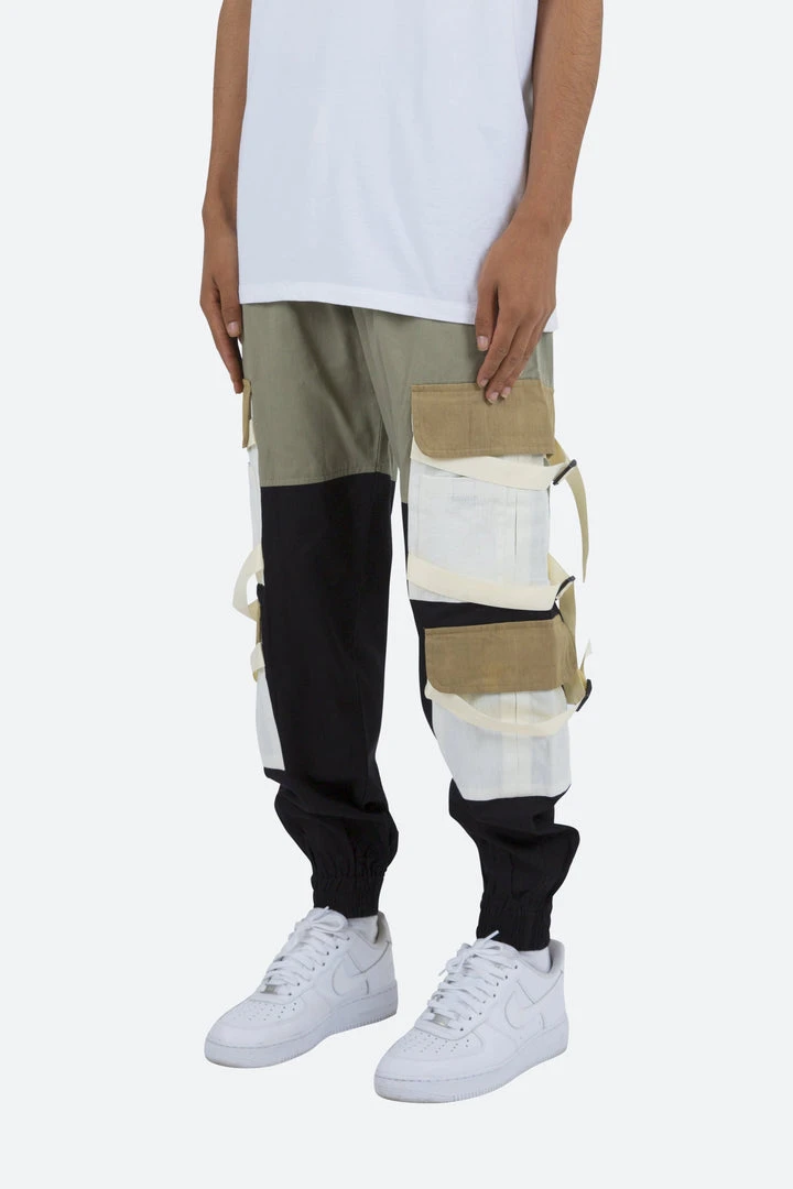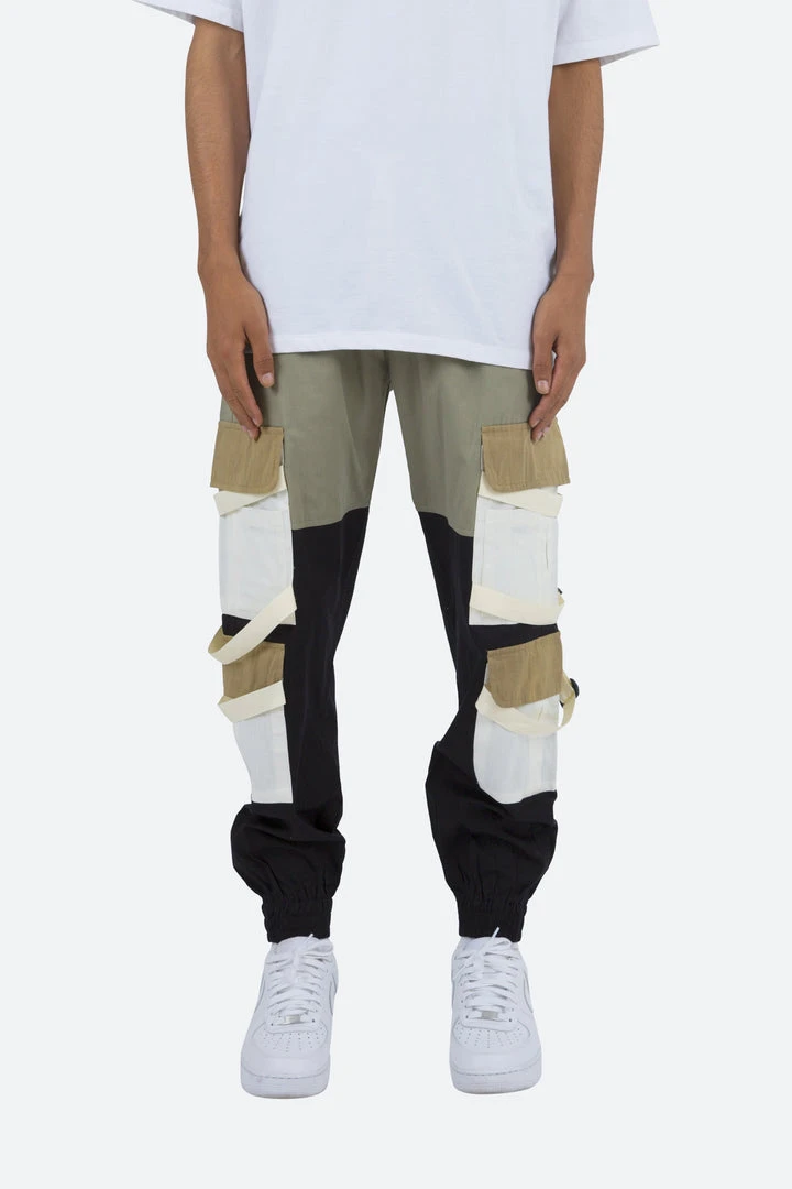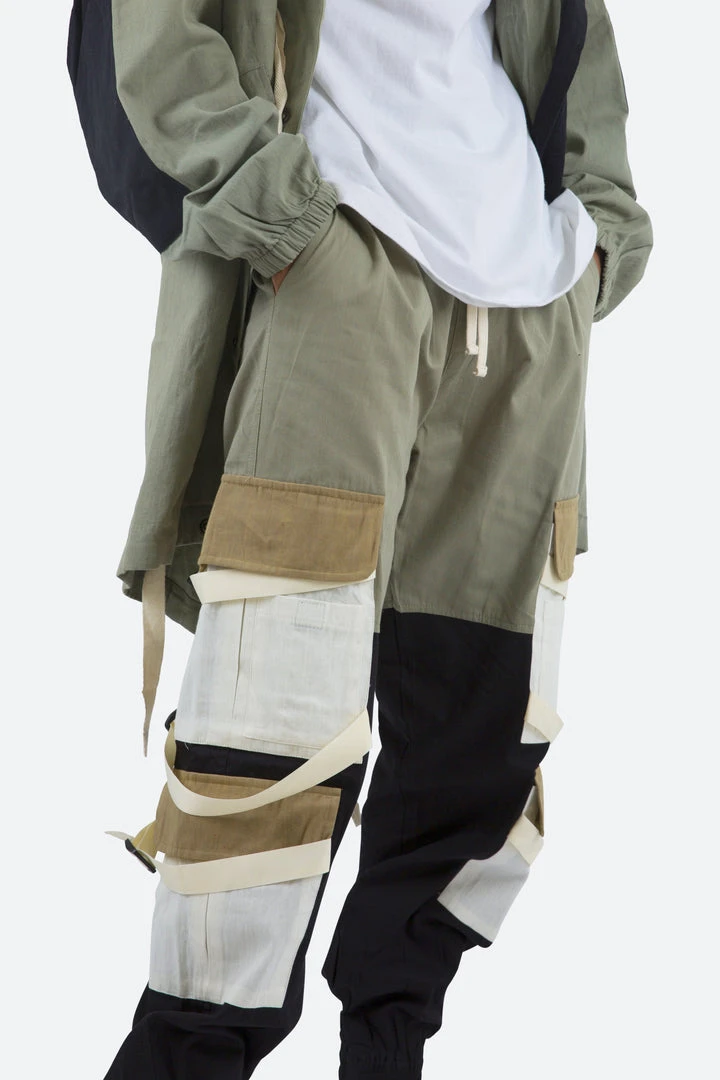 - Elevate your style with the Mnml Paneled Strap Cargo Pants in Green/Black. Designed for the modern man, these cargo pants combine functionality with a sleek, urban aesthetic.