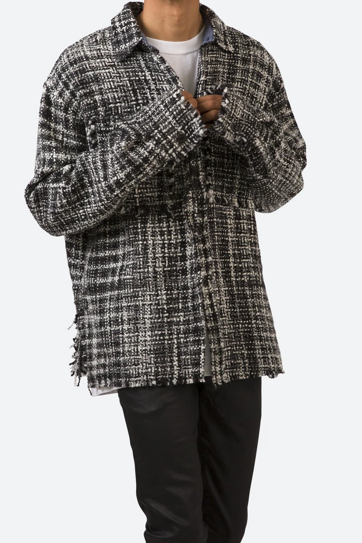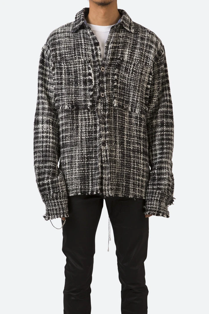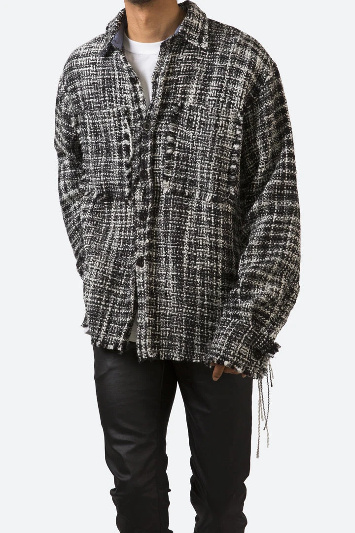 - Elevate your casual wardrobe with the Mnml Raw Edge Flannel Shirt. Featuring a sleek black and white design, this shirt is perfect for any occasion, offering both style and comfort.