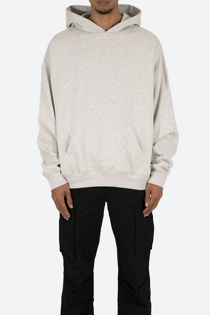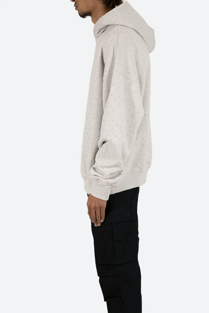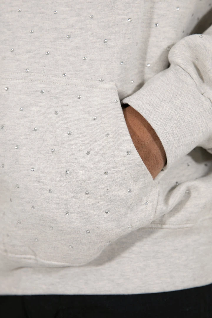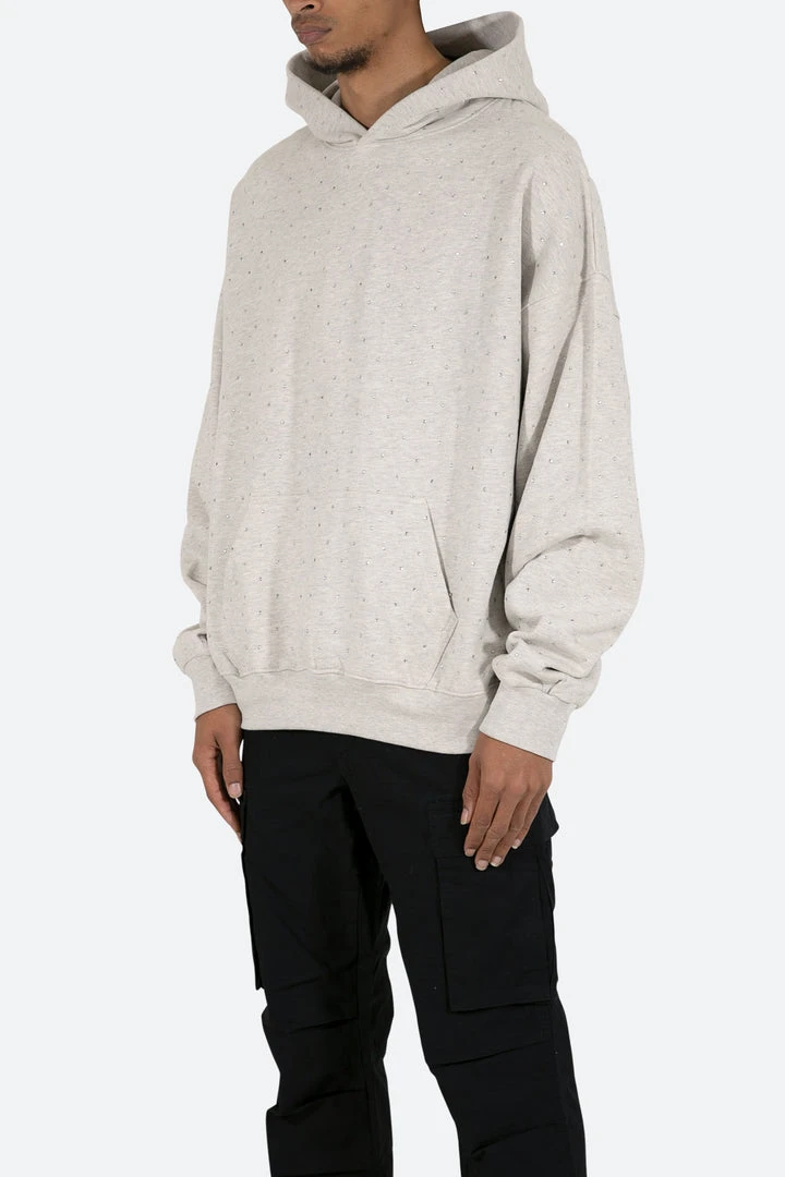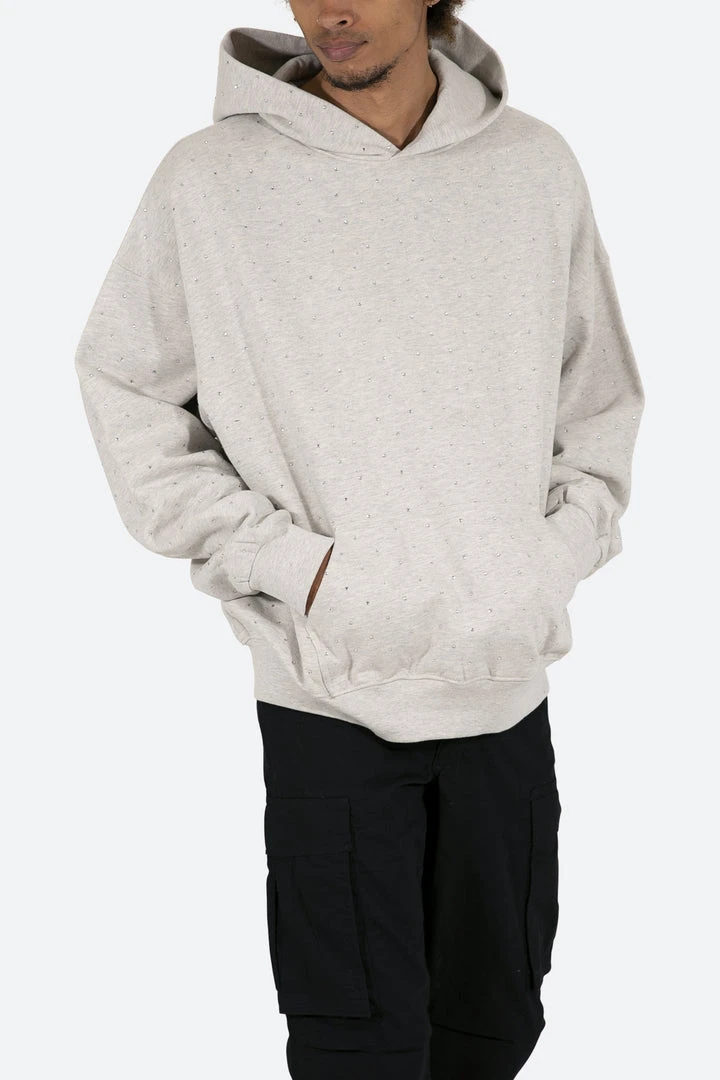 - Elevate your style with the Mnml Rhinestone Hoodie in Grey. This trendy hoodie features a sleek design with rhinestone accents, making it a standout piece in your outerwear collection.
