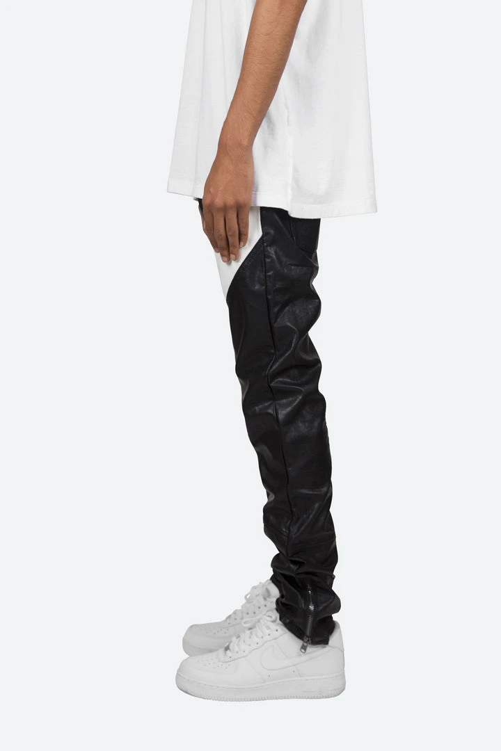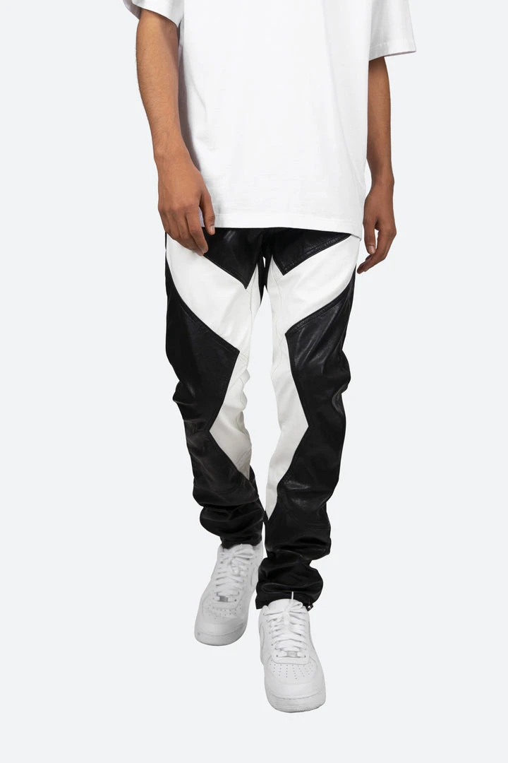- Experience the perfect blend of style and comfort with the Mnml S192 Leather Pants. Crafted from premium leather and denim, these pants offer a sleek, slim fit that complements any outfit.