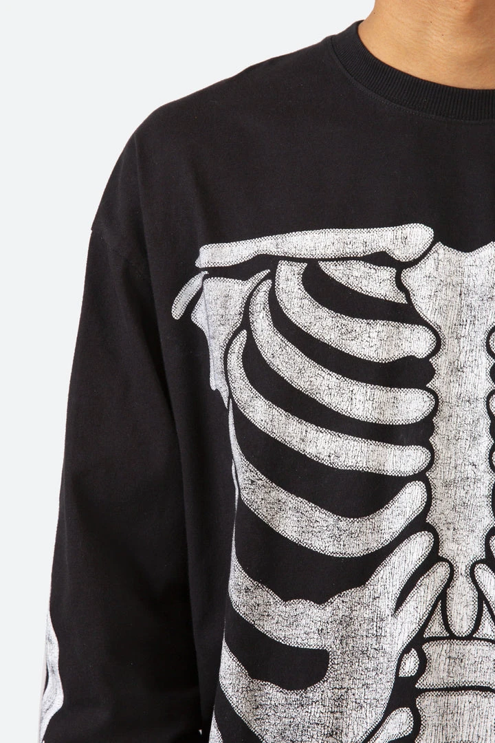 - Elevate your wardrobe with the Mnml Skeleton Long Sleeve Tee in Black. Featuring a unique skeleton graphic, this tee is perfect for those who love minimalist and edgy designs.