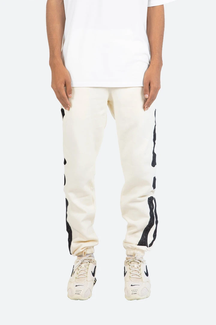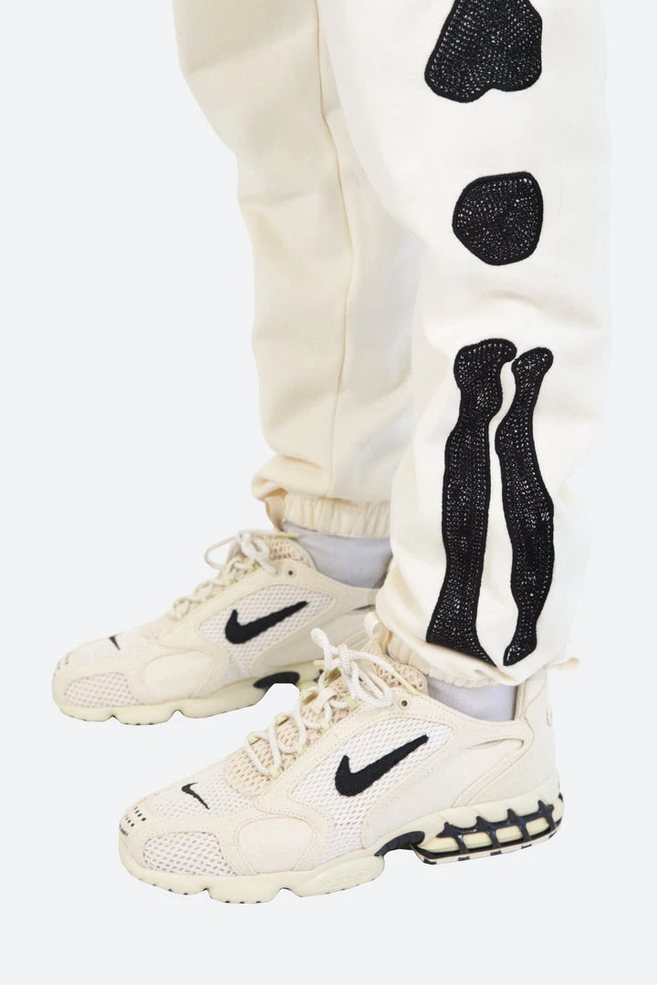 - Experience ultimate comfort with the Mnml Skeleton Sweatpants in Off White. Designed for a relaxed fit, these sweatpants are perfect for lounging or casual outings.