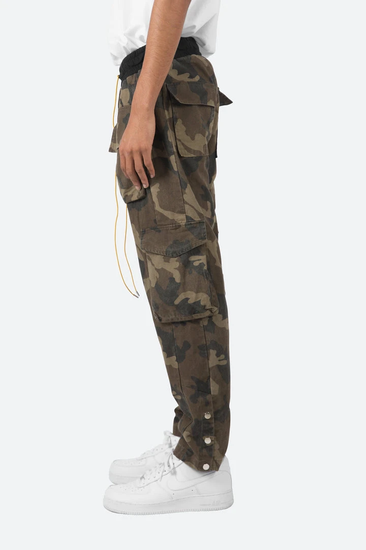 - Crafted from high-quality materials, the Mnml Snap II Cargo Pants offer durability and comfort. The camo print adds a bold, trendy touch to your outfit.