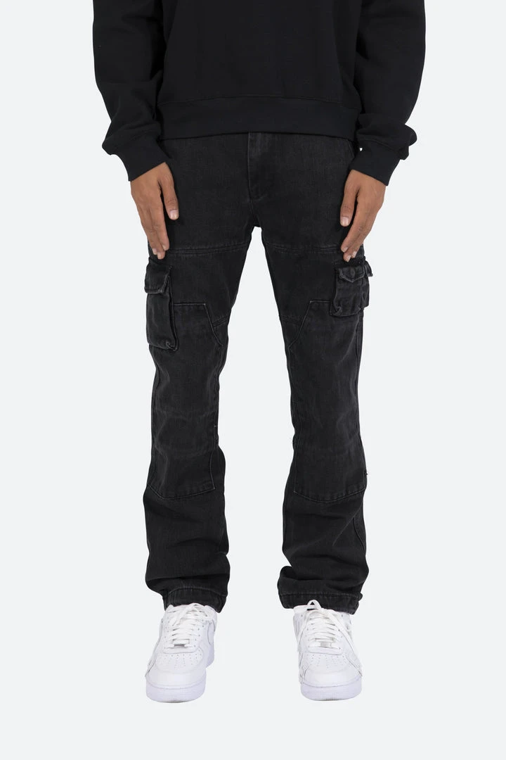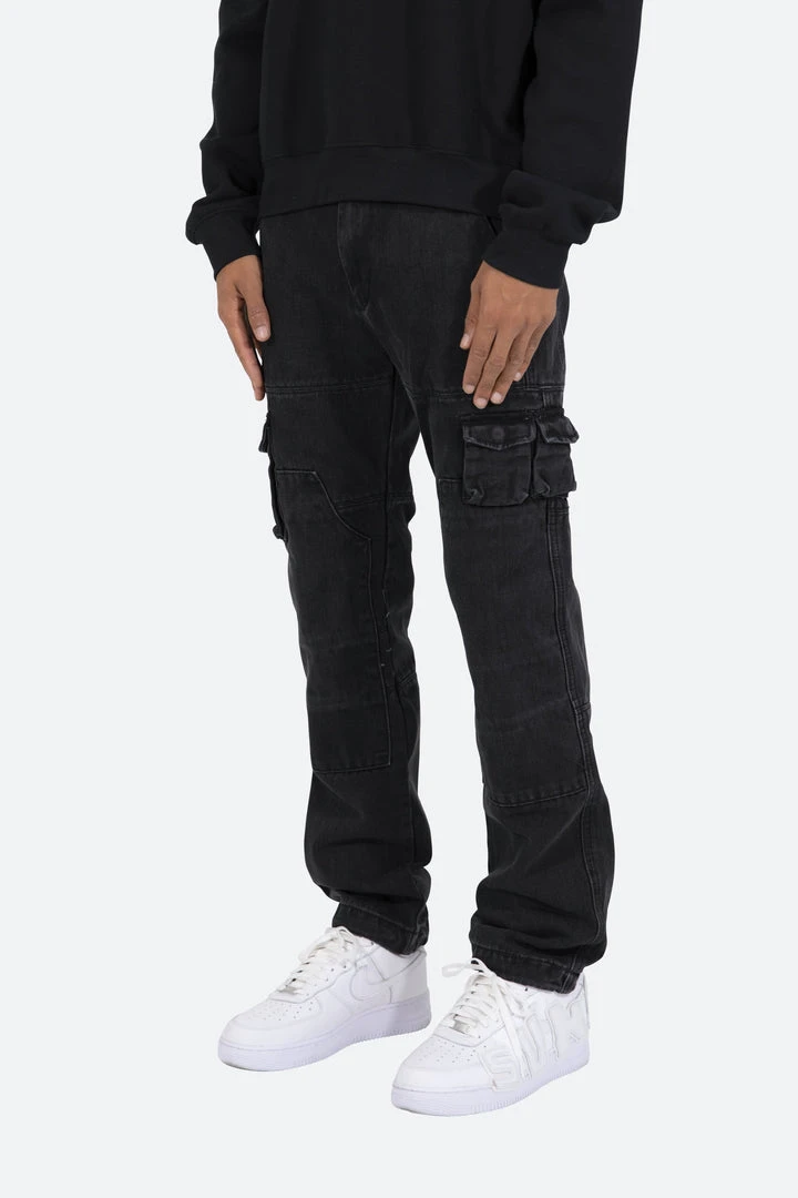 - Crafted from high-quality denim, the Mnml V244 Cargo Baggy Denim offers a vintage black finish, making it a versatile addition to any wardrobe. Perfect for casual outings or urban adventures.