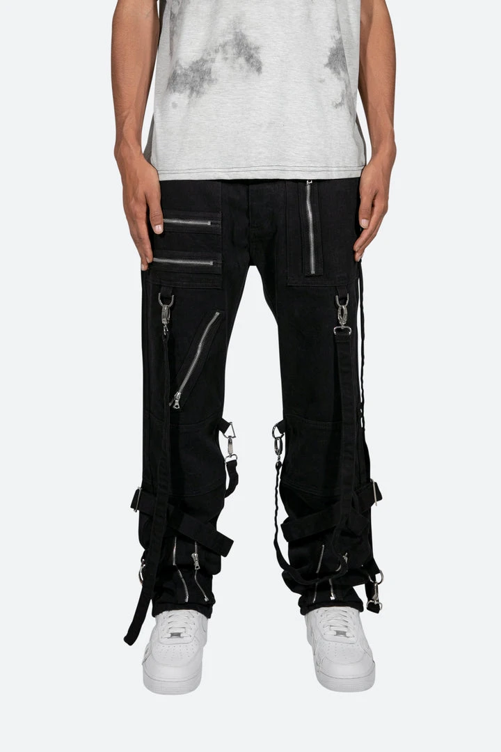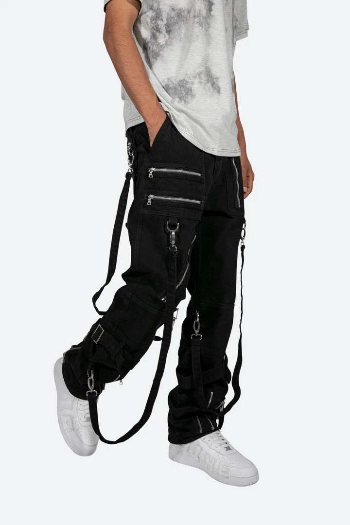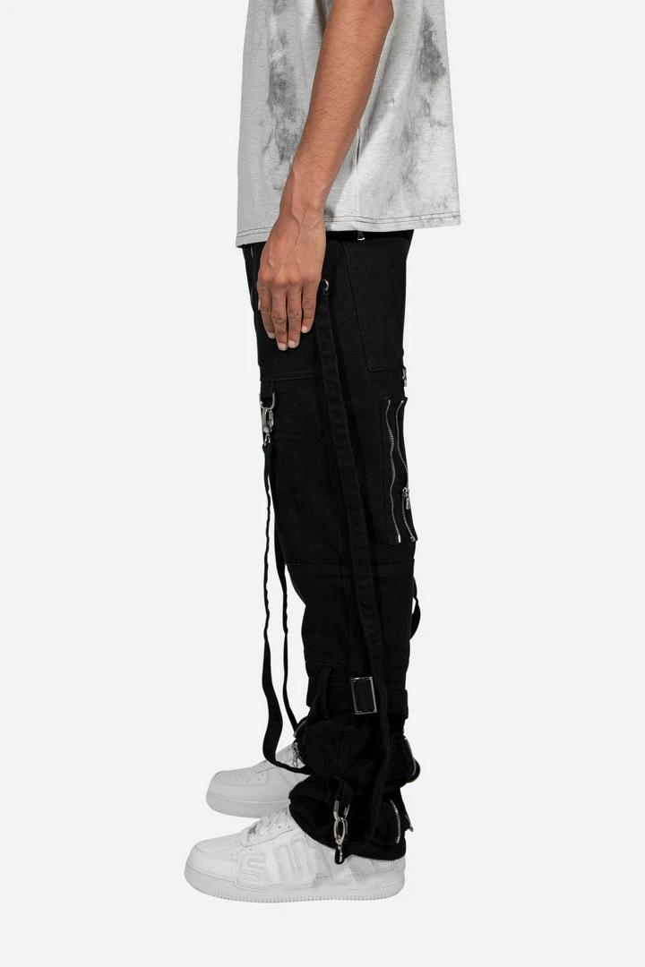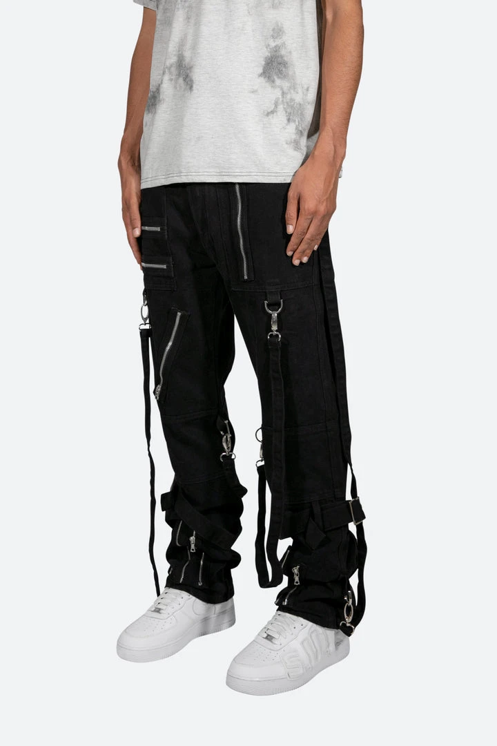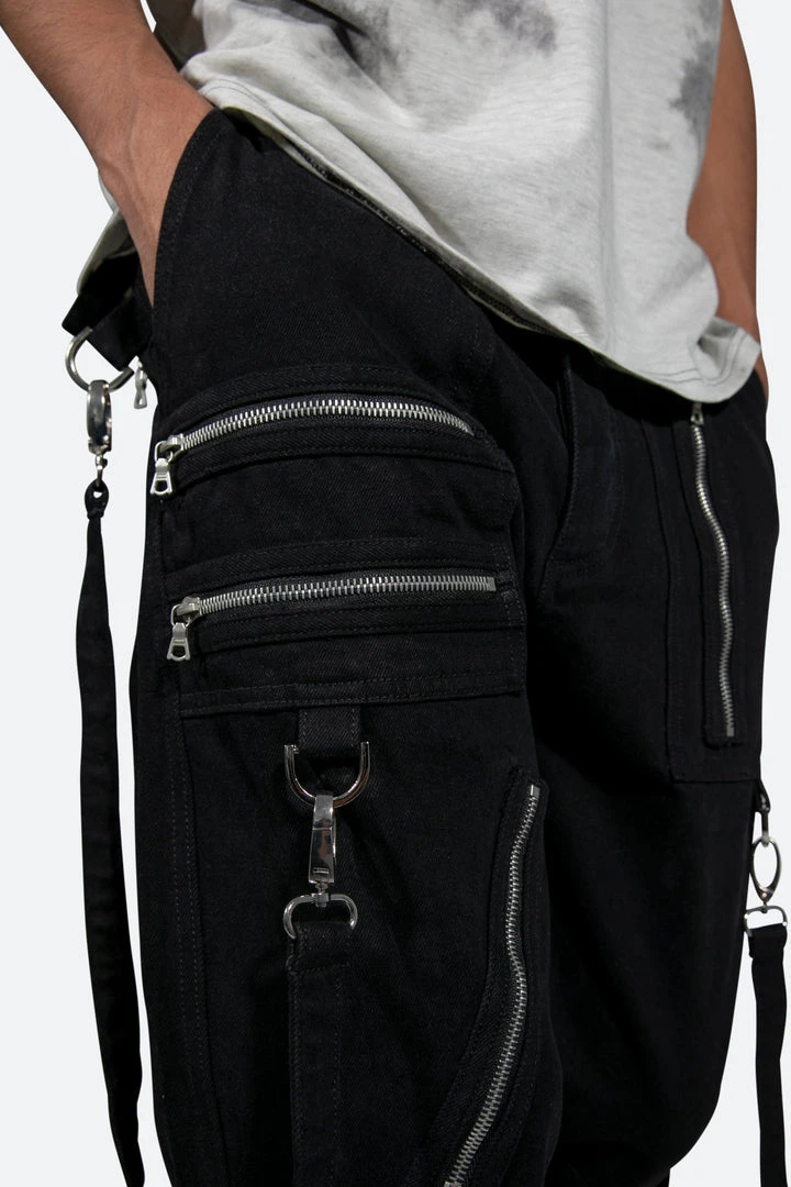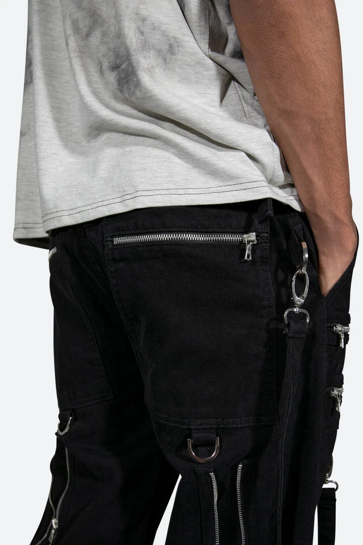 - Featuring multiple utility pockets, the Mnml V458 Cargo Baggy Denim offers both functionality and style. The black denim fabric ensures a sleek, modern look that pairs well with any outfit.